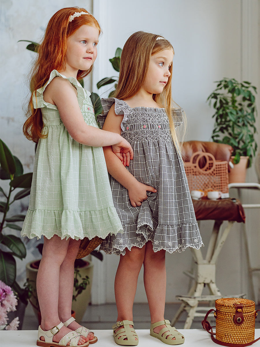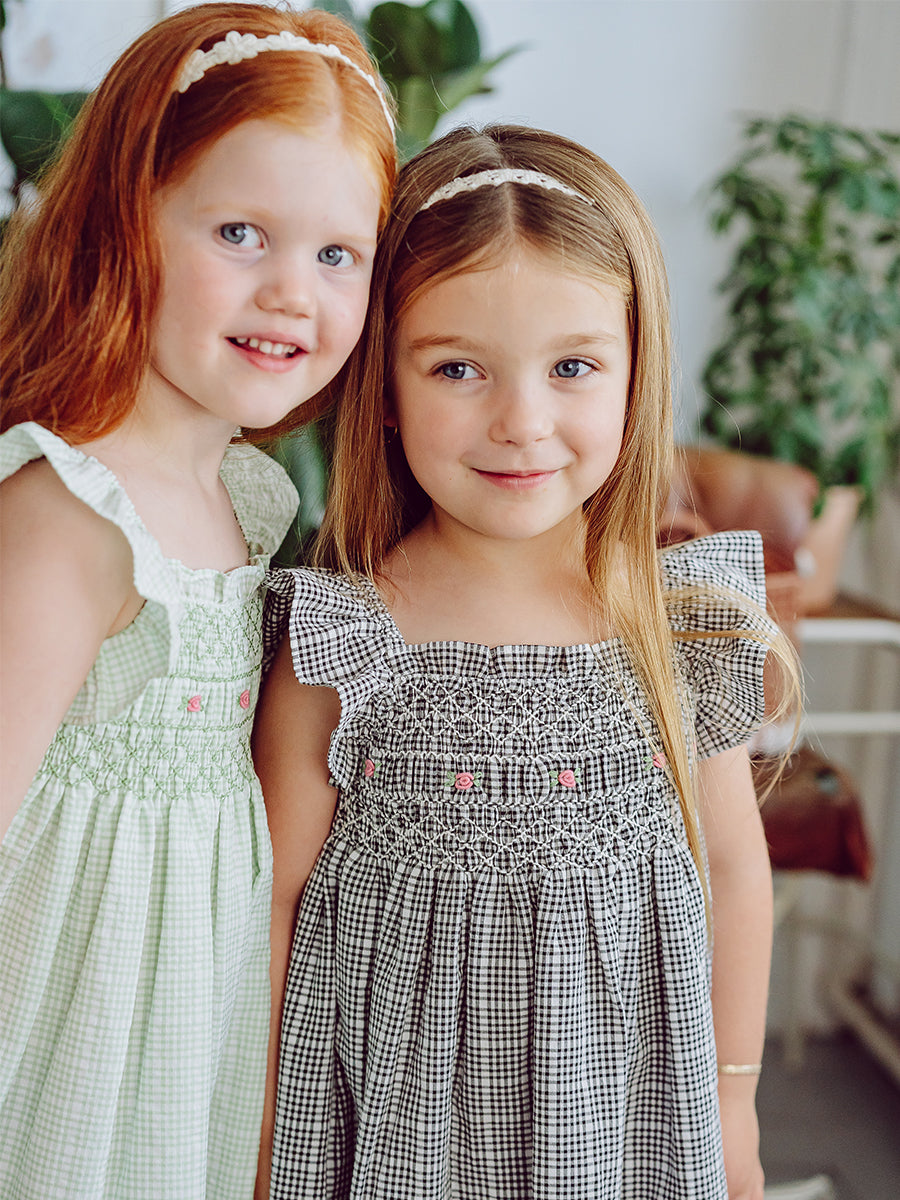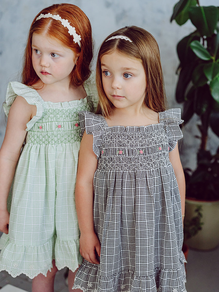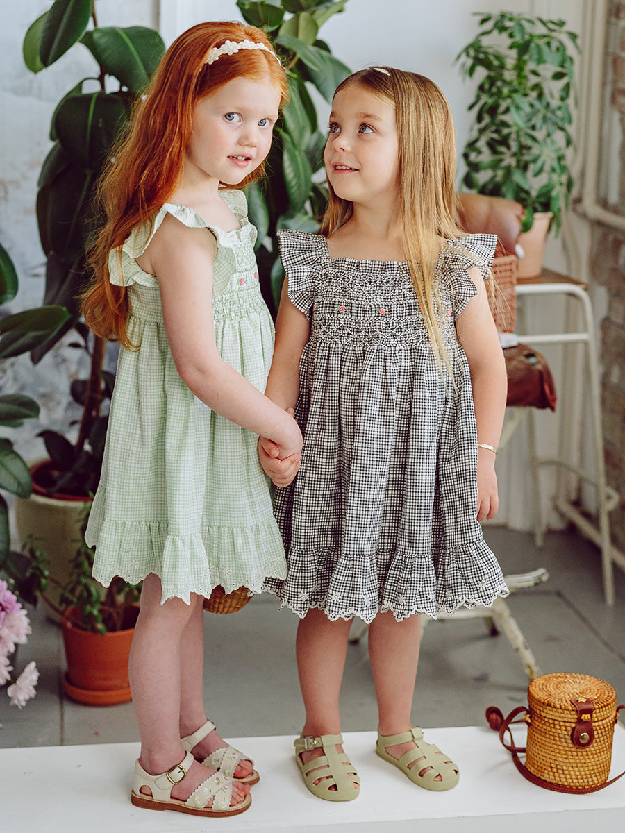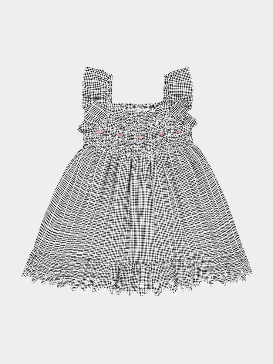 Stirling Smocking Dress, Black Gingham