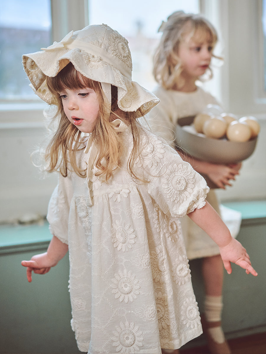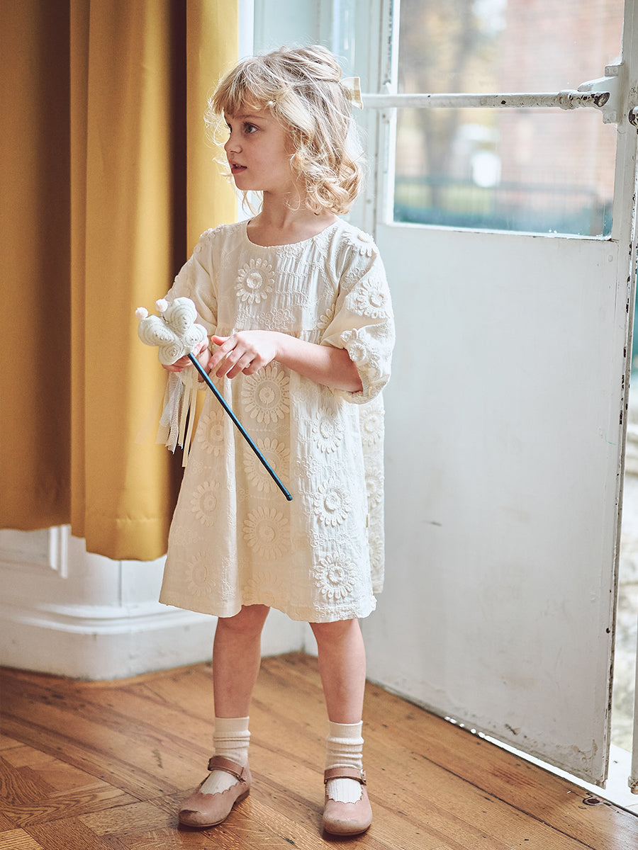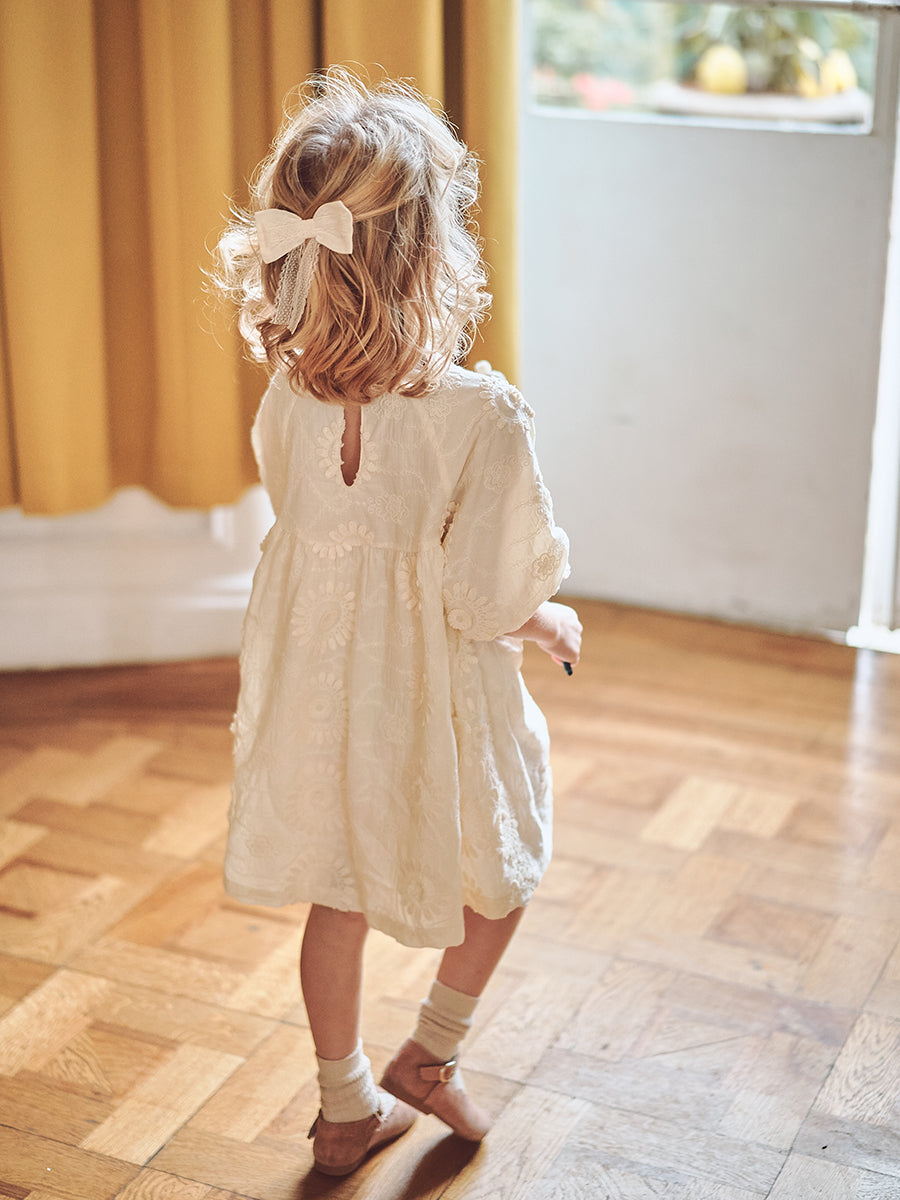 Leila Hand-Embroidered Dress, Almond White