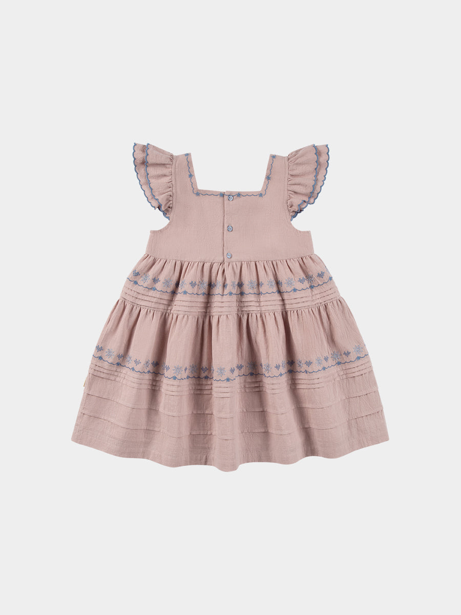 Silene Embroidery Dress, Red Bean Pink