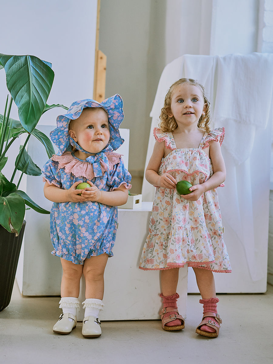 Celine Smocking Dress, Wisteria Garden, Blue