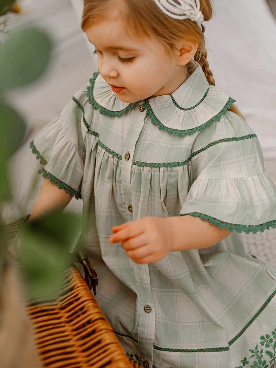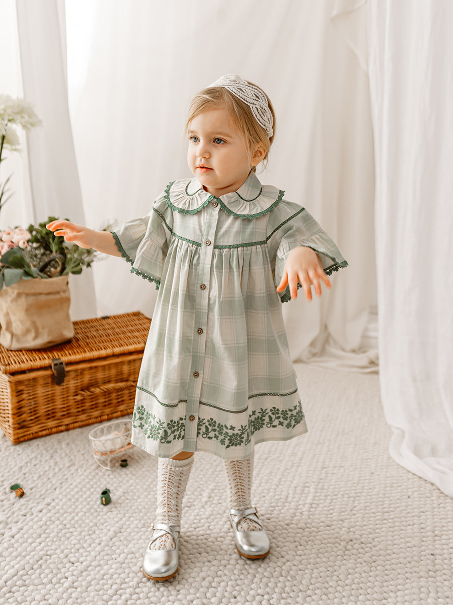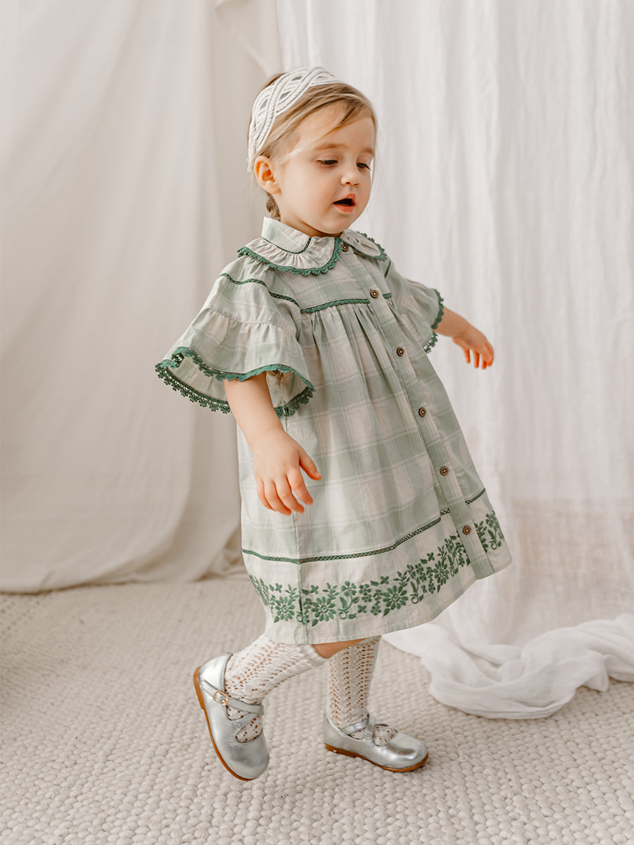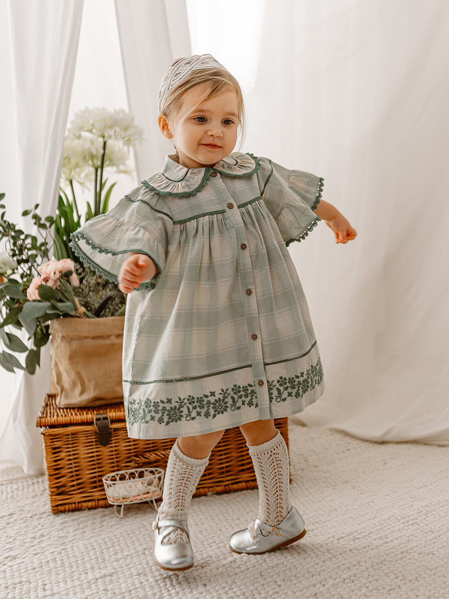 Finsbury Embroidered Dress, Green Check