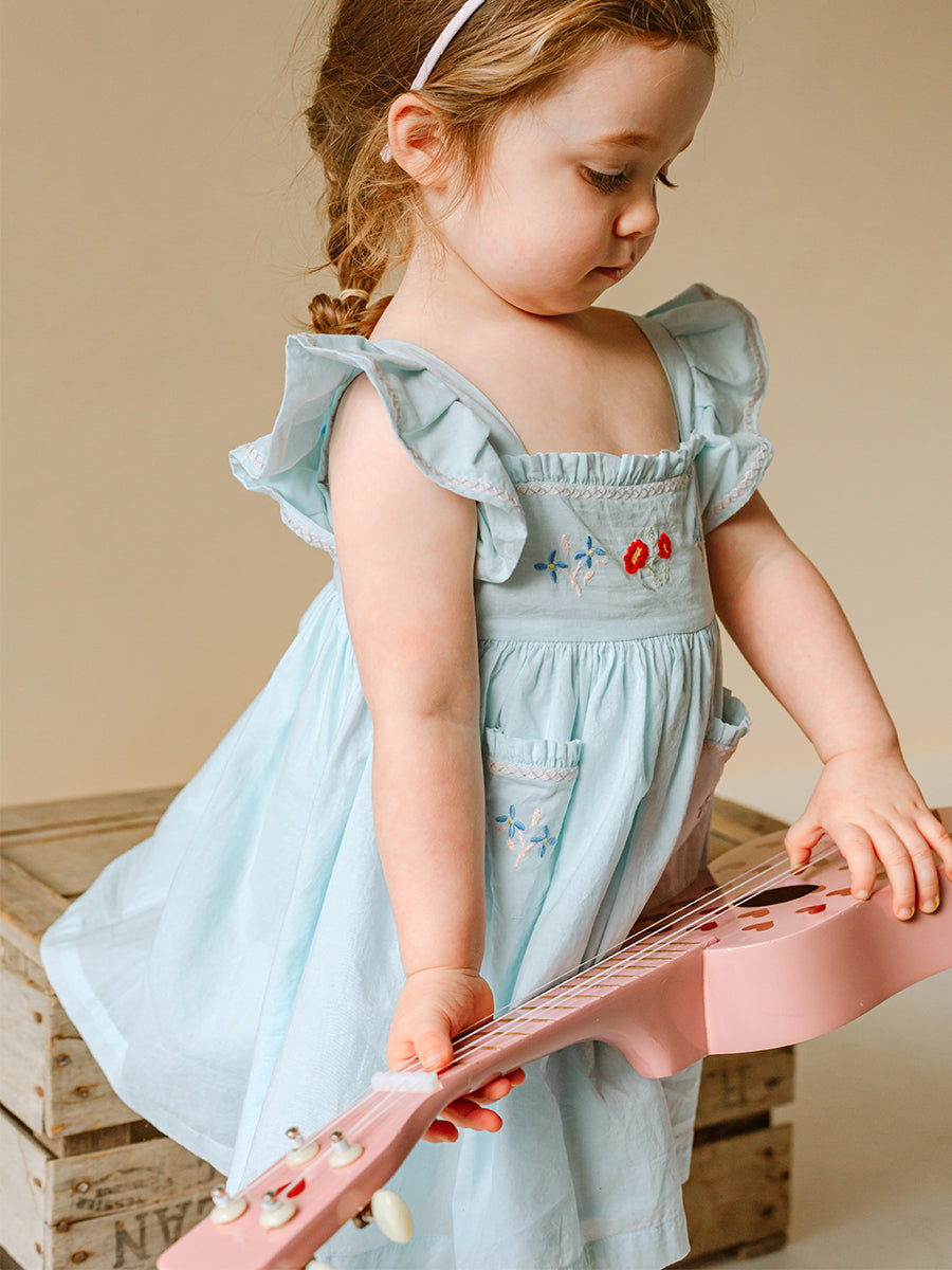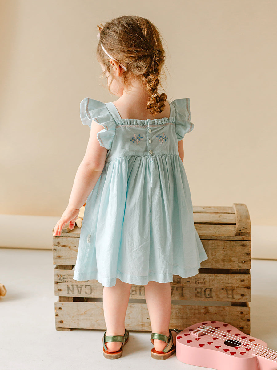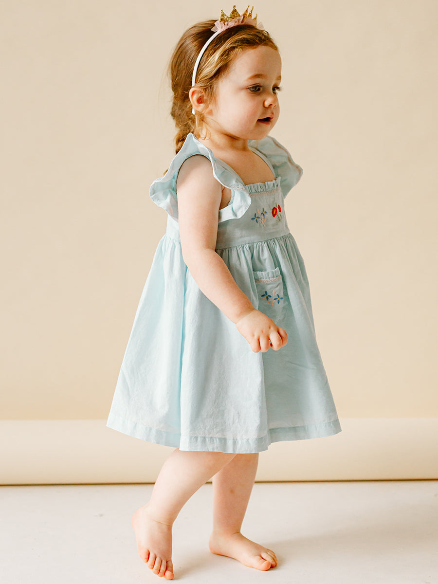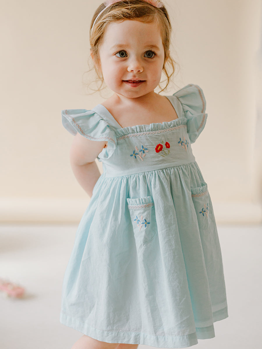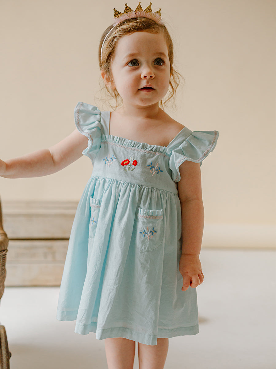 Havana Embroidered Dress, Sky Blue