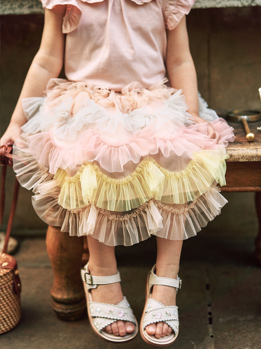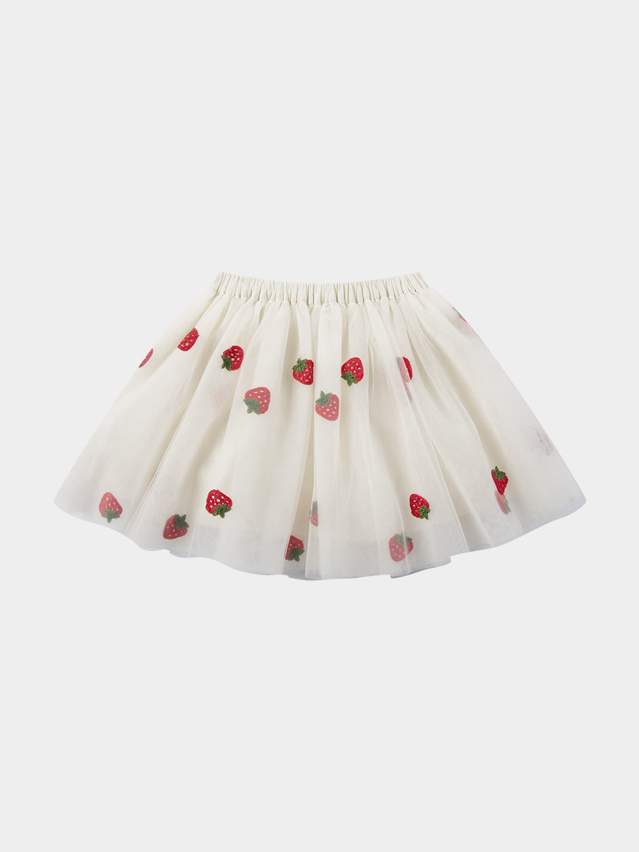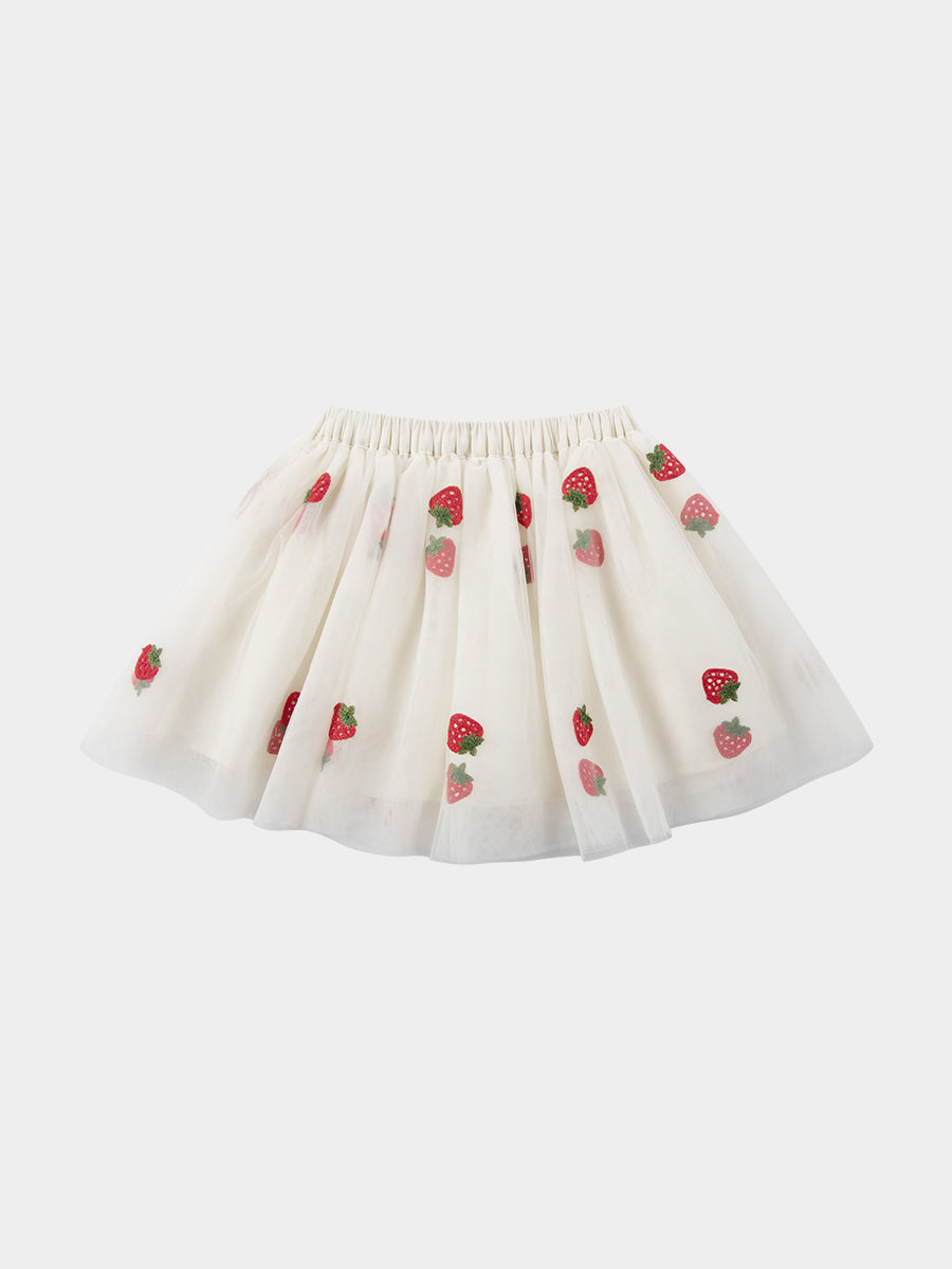 Karisa Strawberry Tulle Skirt, Almond White