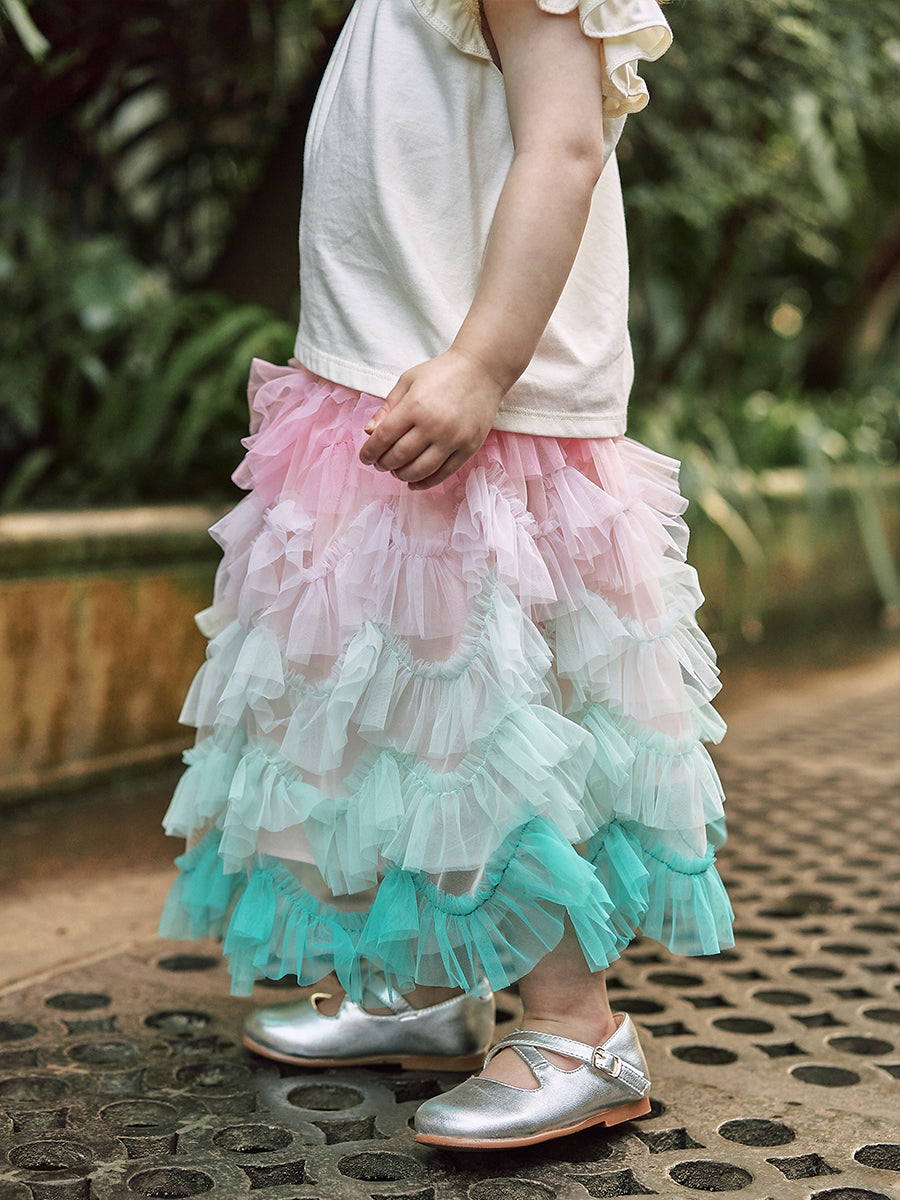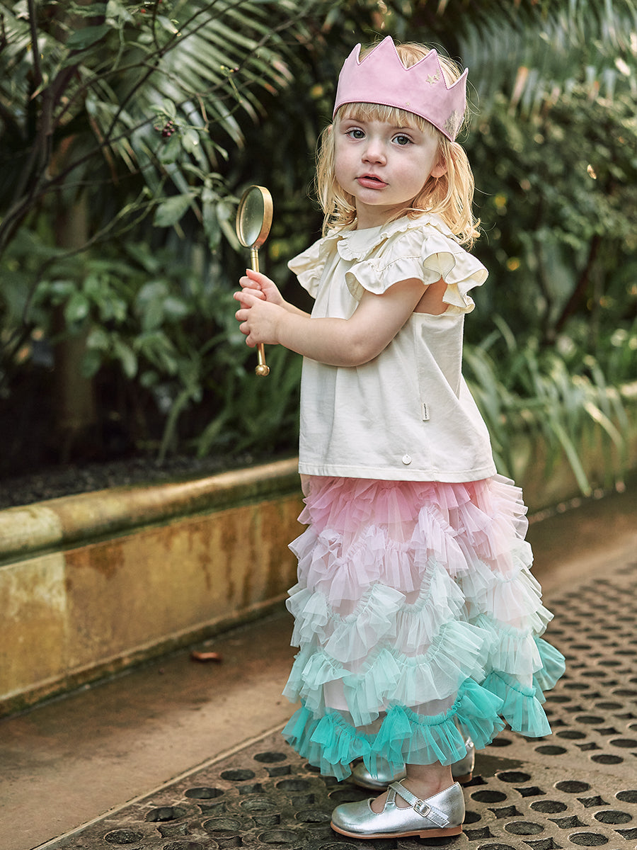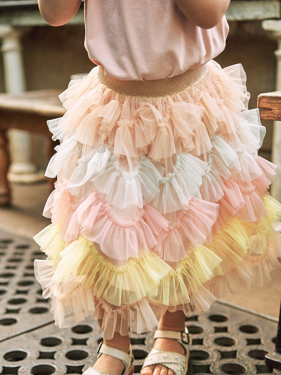 Karisa Strawberry Tulle Skirt, Almond White