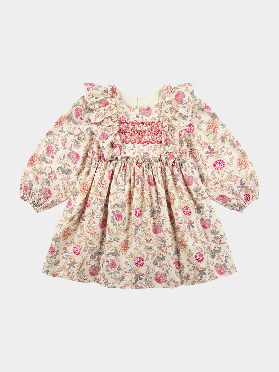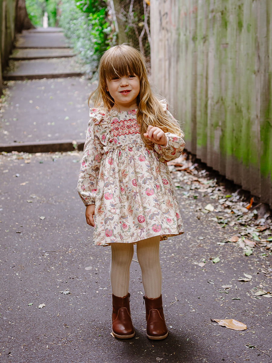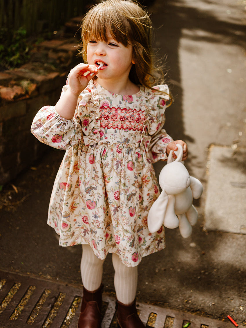 Abigail Hand-Smocked Dress, Farnese Garden, Cream