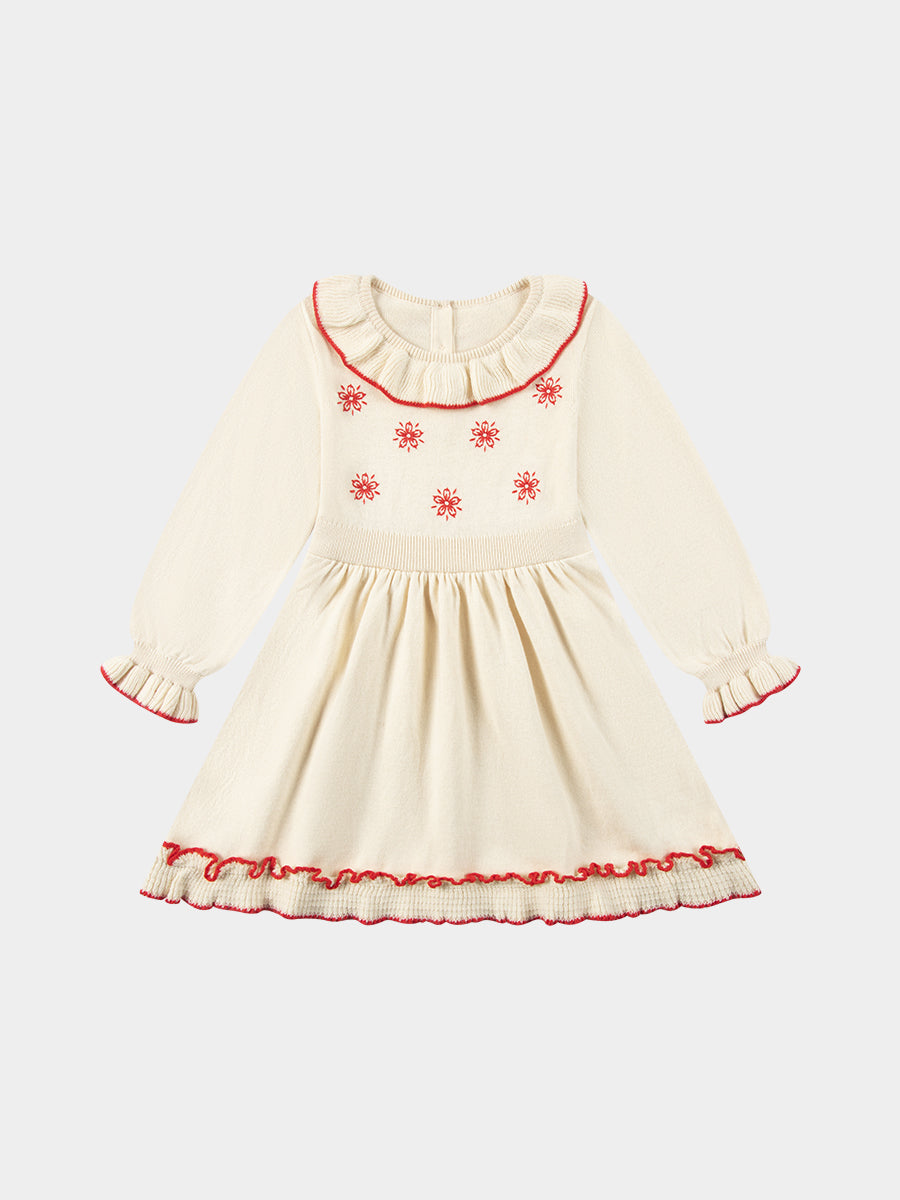 Marie Hand-Embroidered Knitted Dress, Crème Brulee
