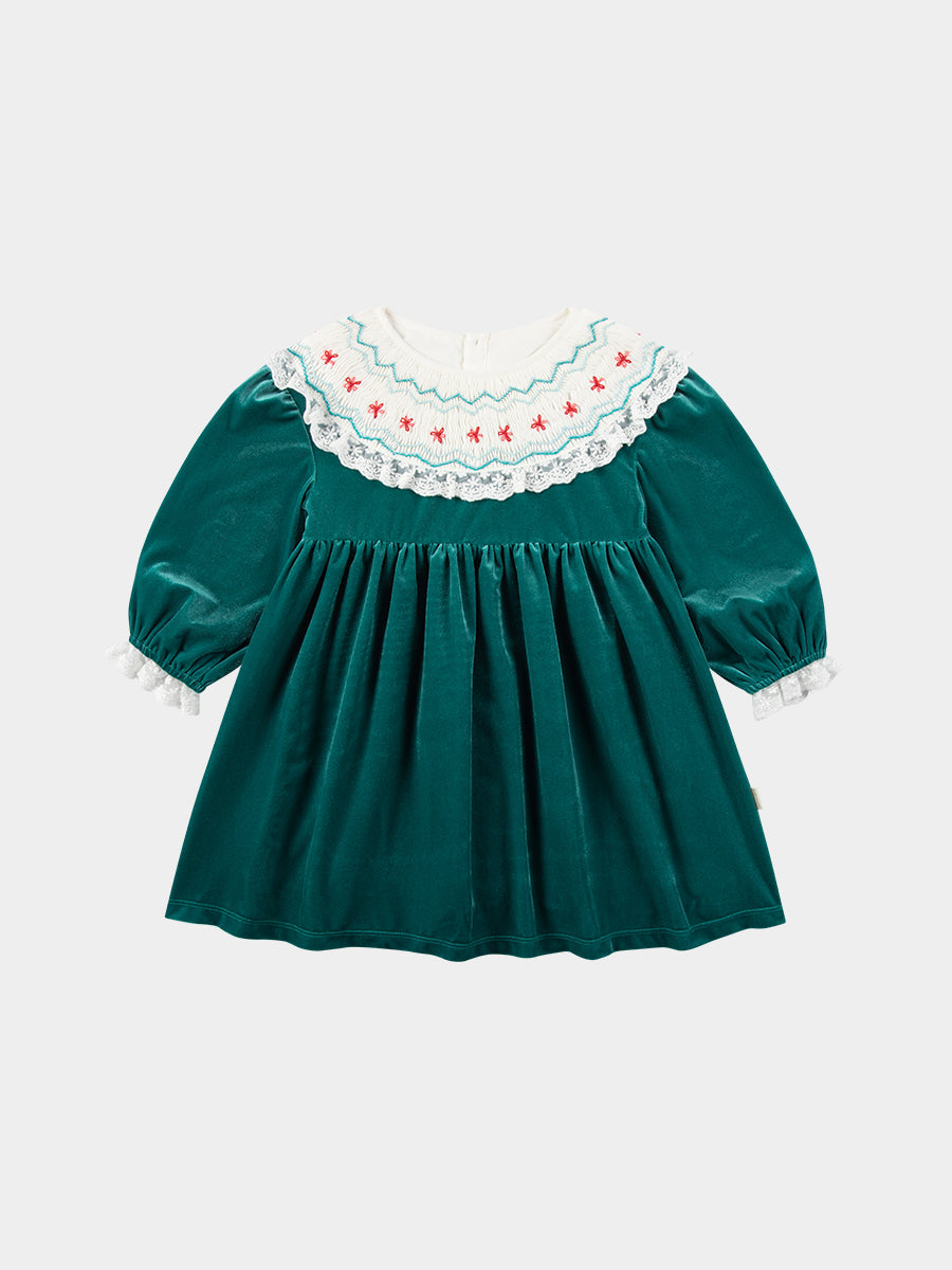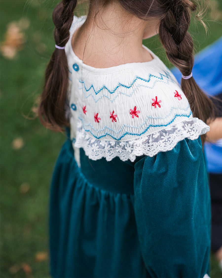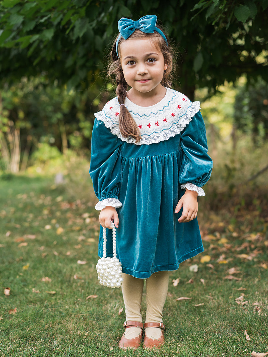 Bella Hand-Smocked Velvet Dress, Lake Green