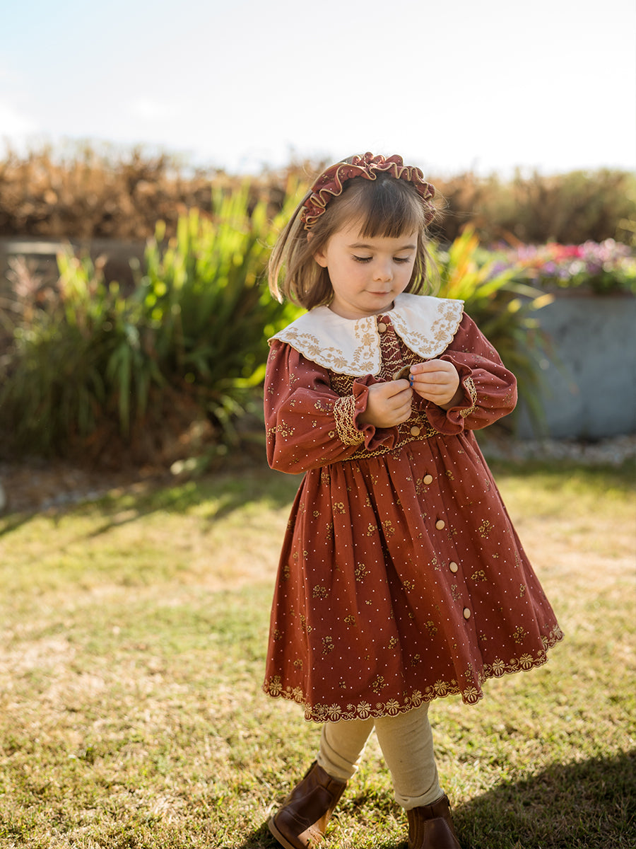 Jennie Hand-Smocked Dress, Wildflower Polka, Burgundy