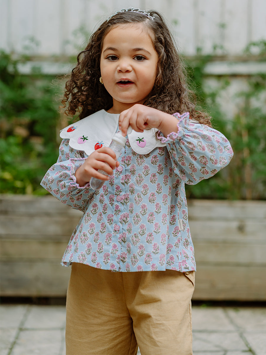 Canterbury Embroidered Top, Spring Delight, Blue