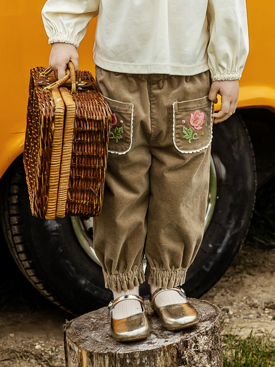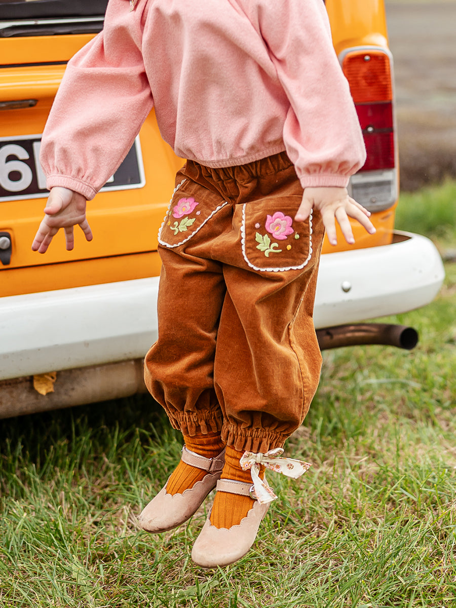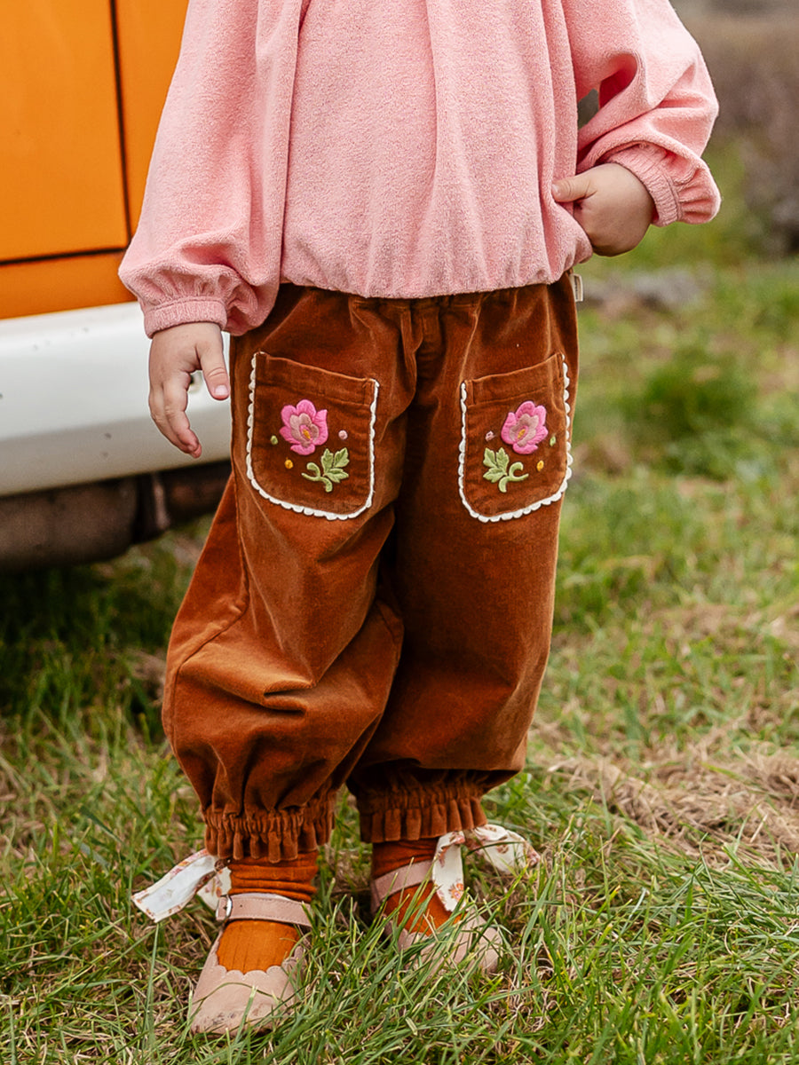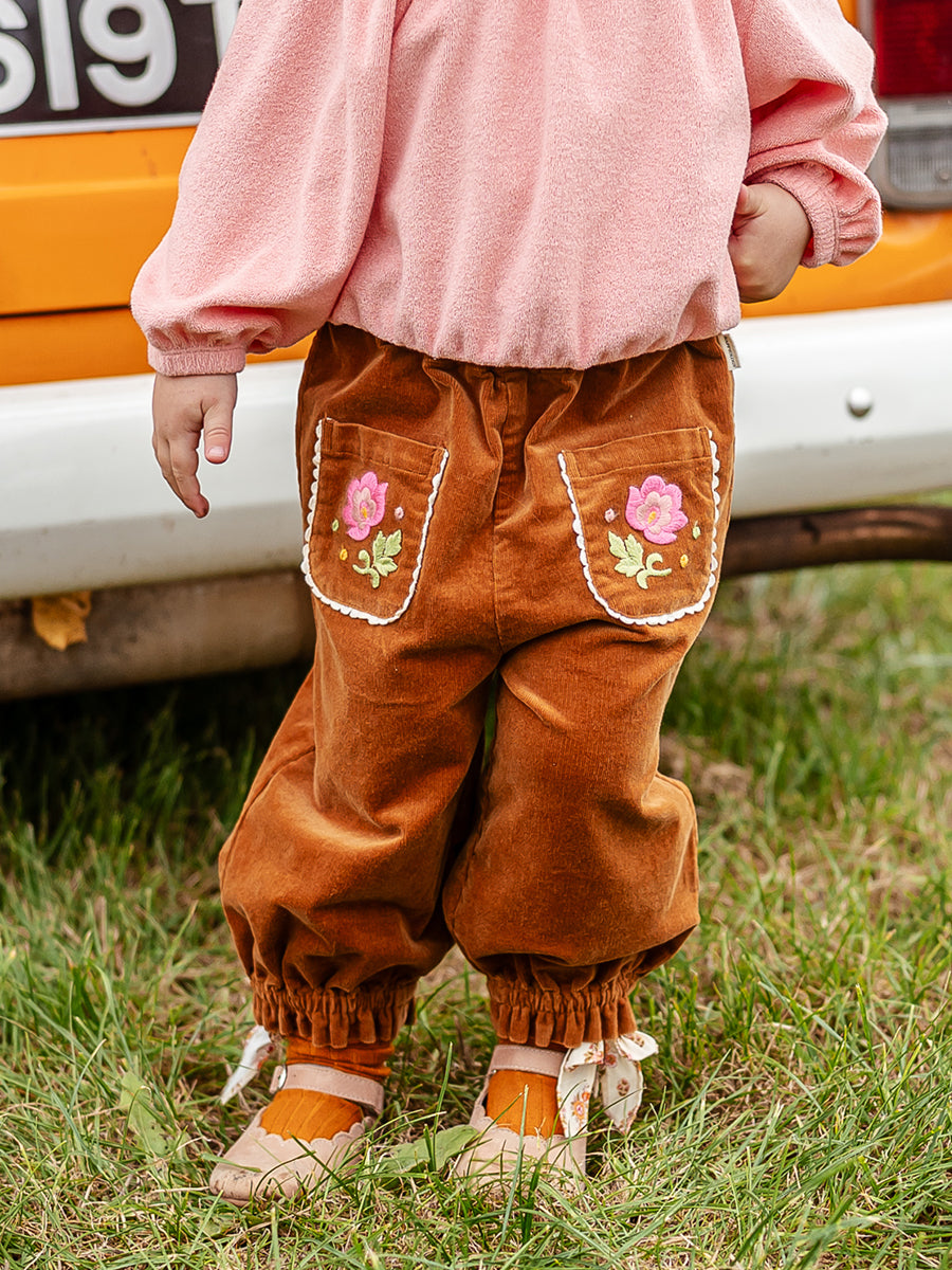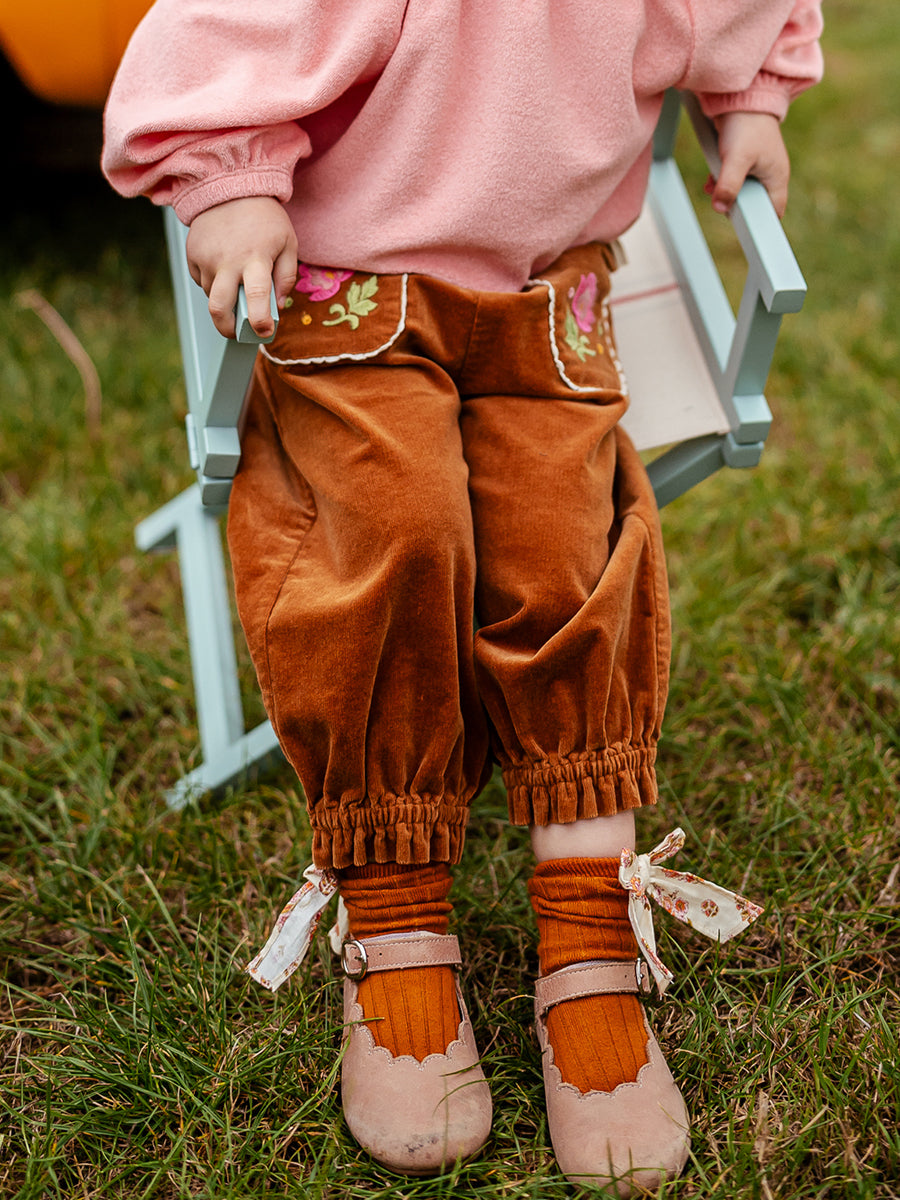 Malta Embroidered Trousers, Caramel