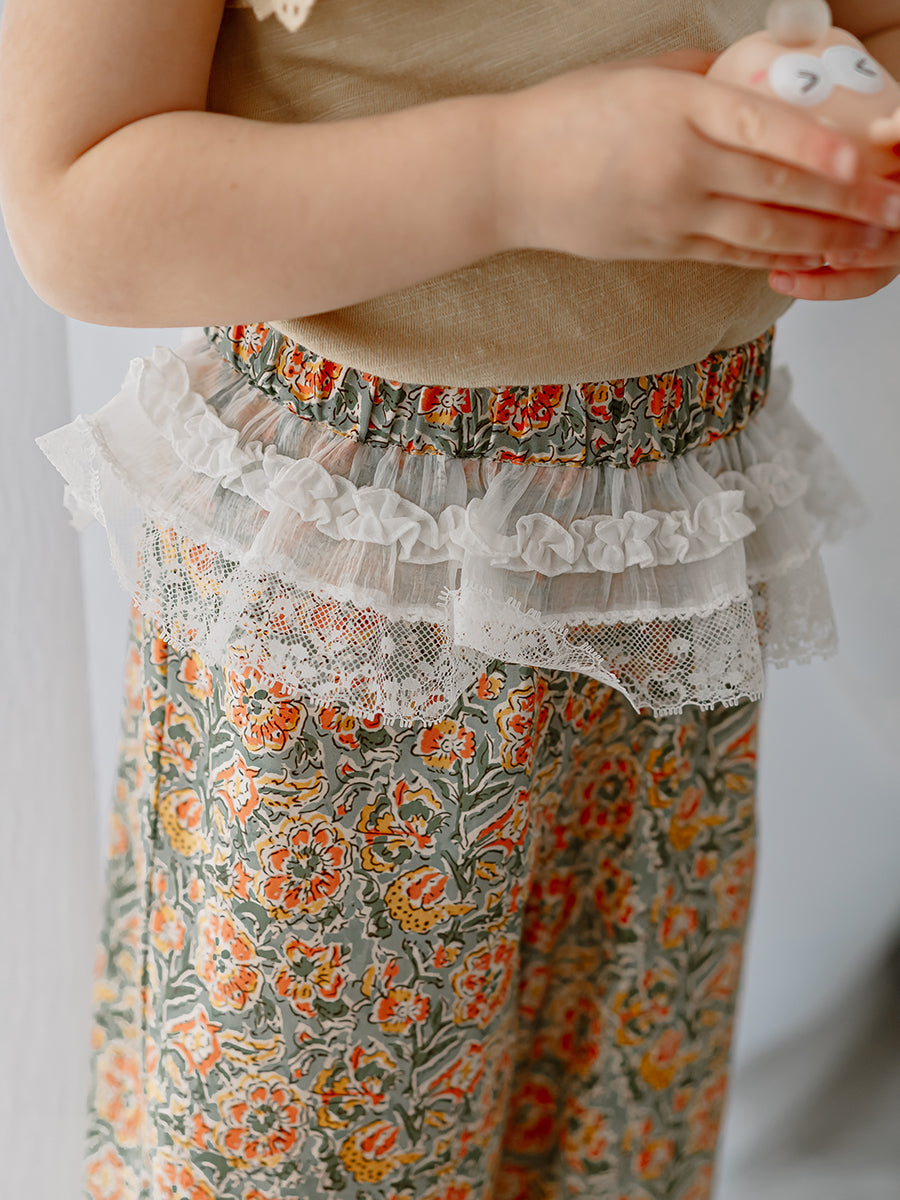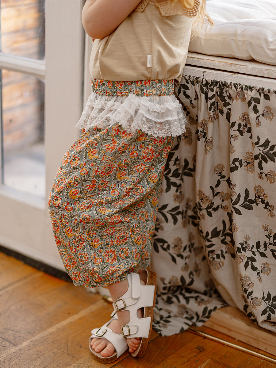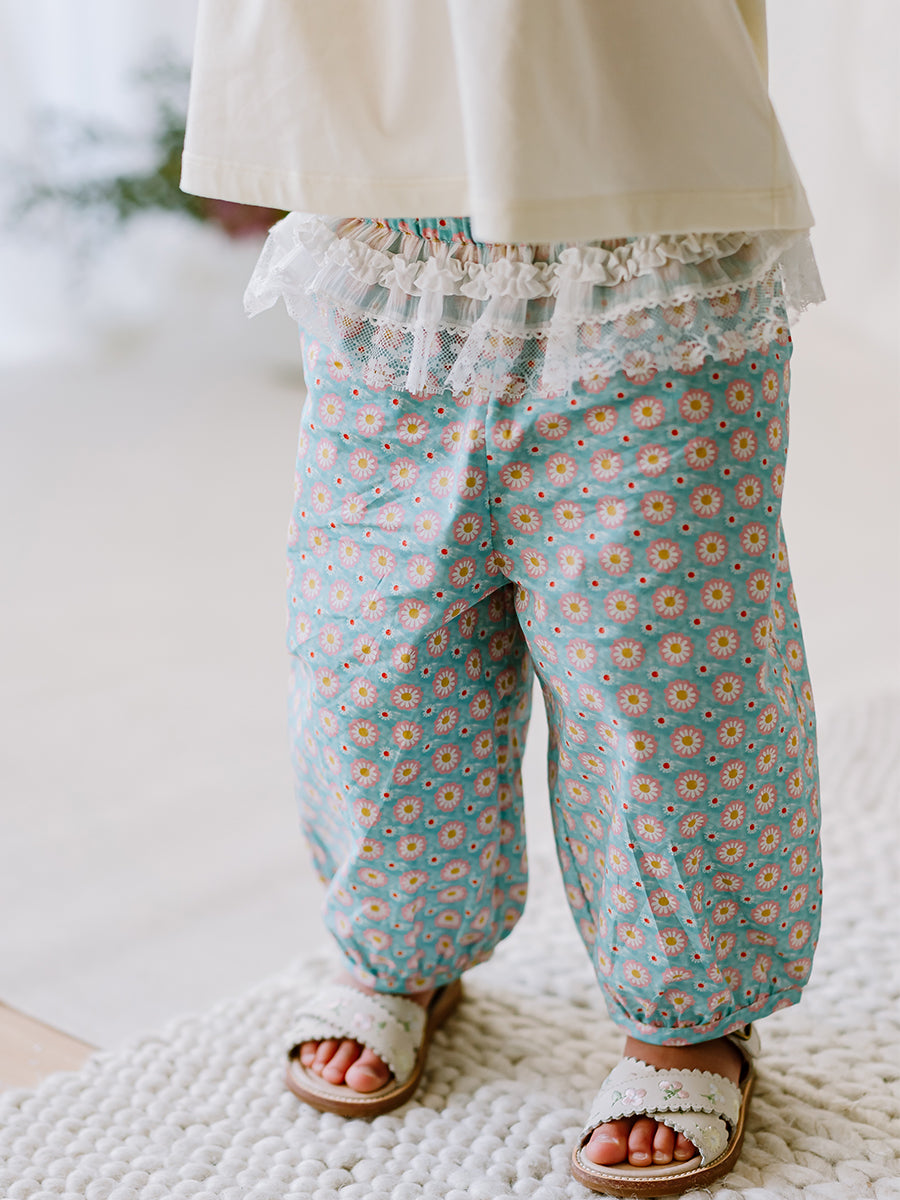 Valladolid Trousers, Ceramic Flowers, Teal
