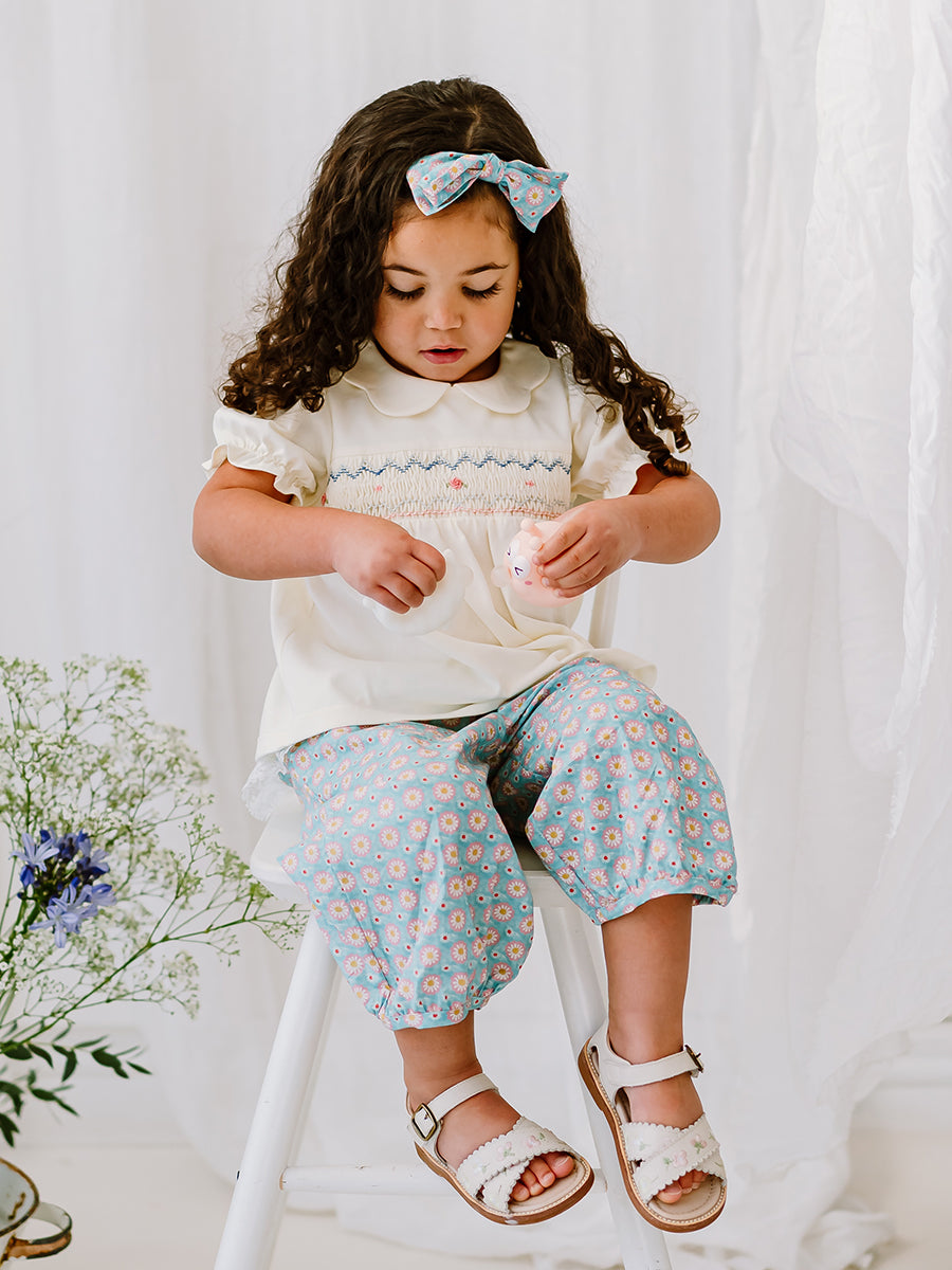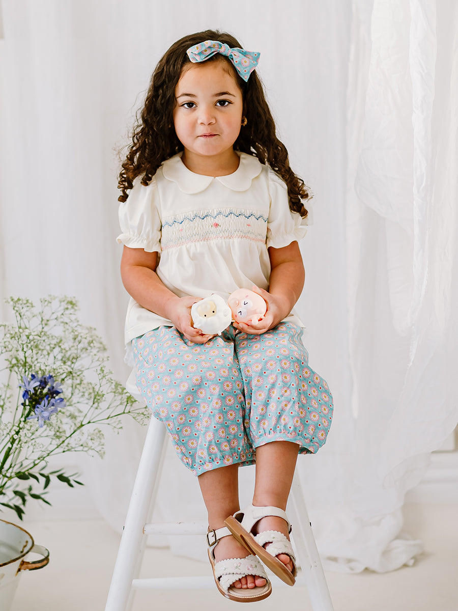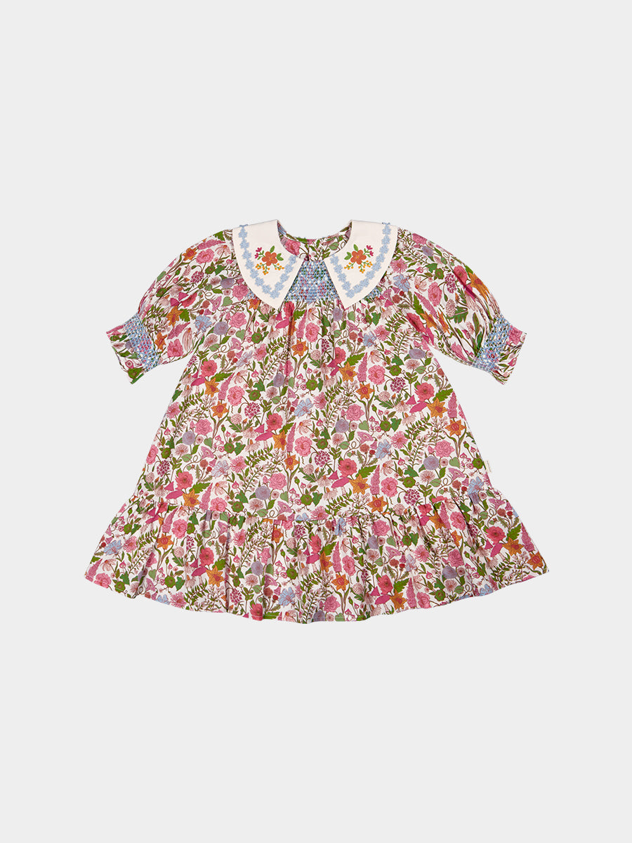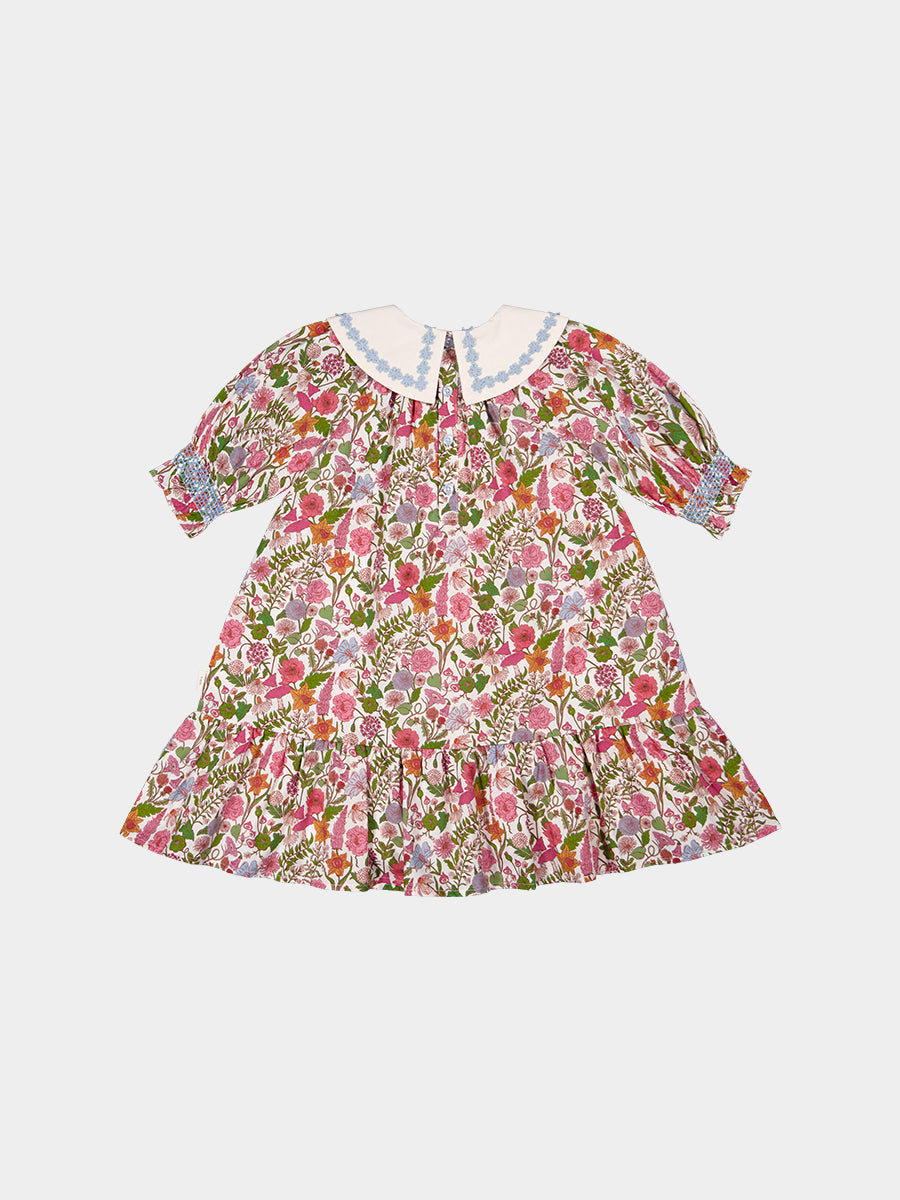 Celine Smocking Dress, Wisteria Garden, Blue