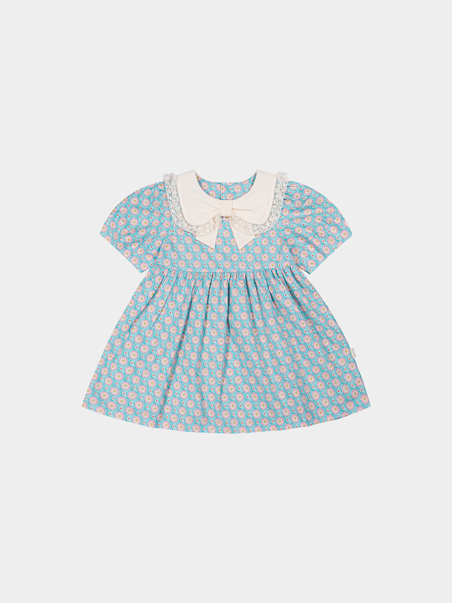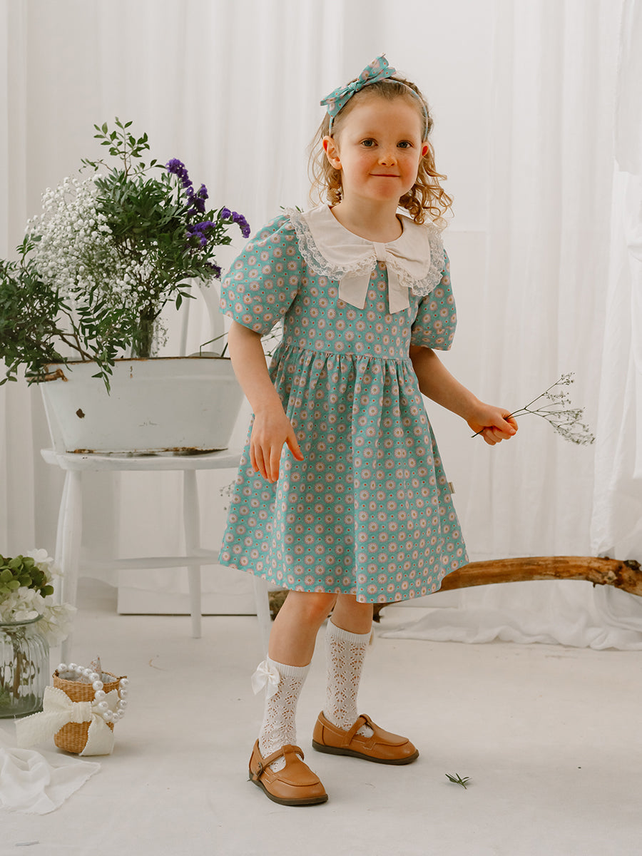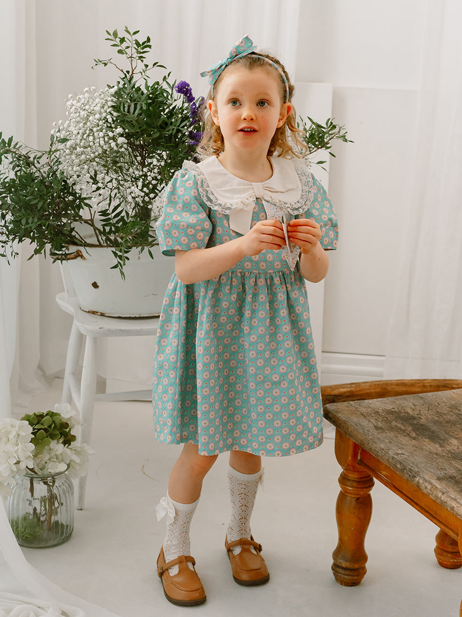 Amsterdam Bow Dress, Ceramic Flowers, Teal
