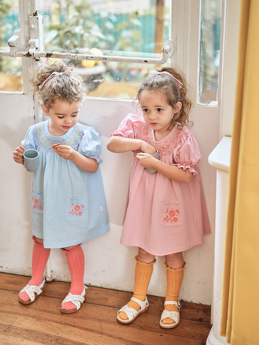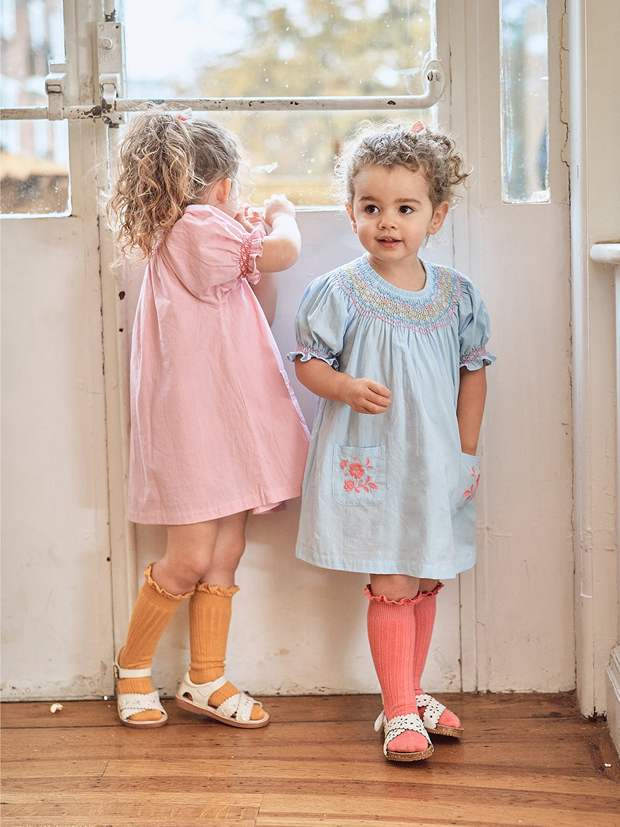 Our handmade pieces are lovingly brought to life by our in-house artisans — hand-smocked, hand-embroidered, delicately beaded and finished with beautiful attention to detail. Made in small quantities, each style is a little work of art, designed to be worn, treasured, and passed on.