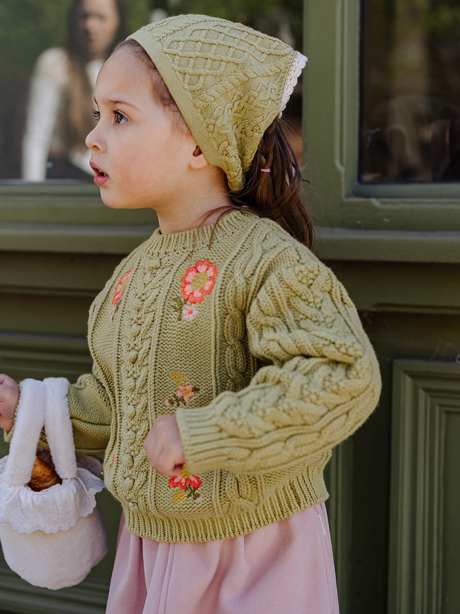 Lobelia Cable Knit Kerchief, Lime Green