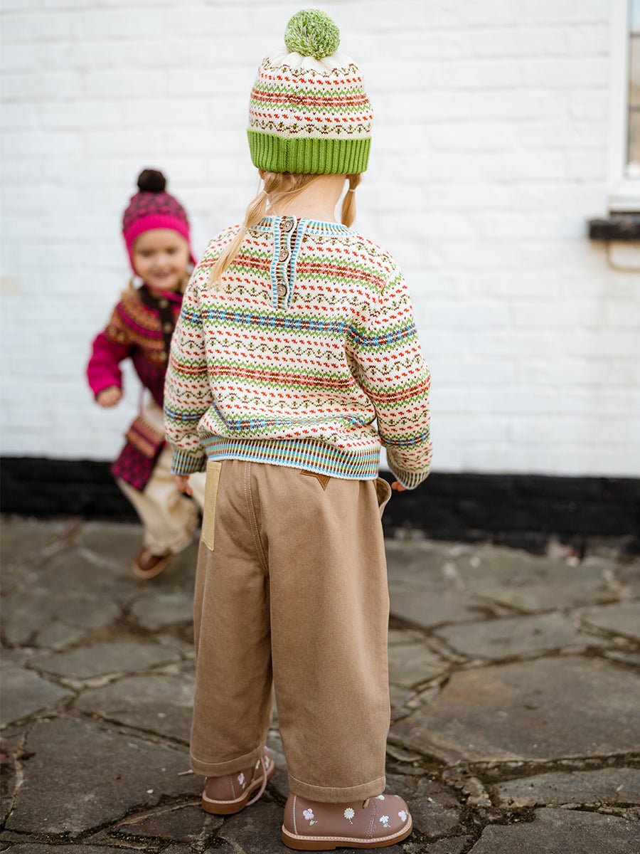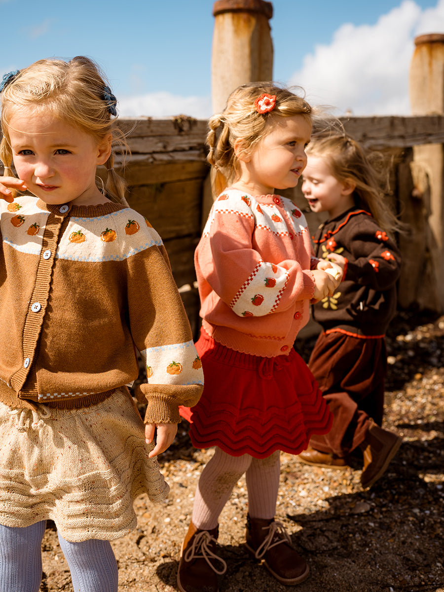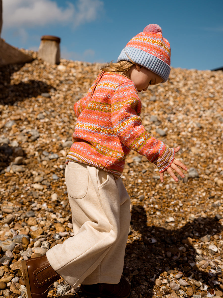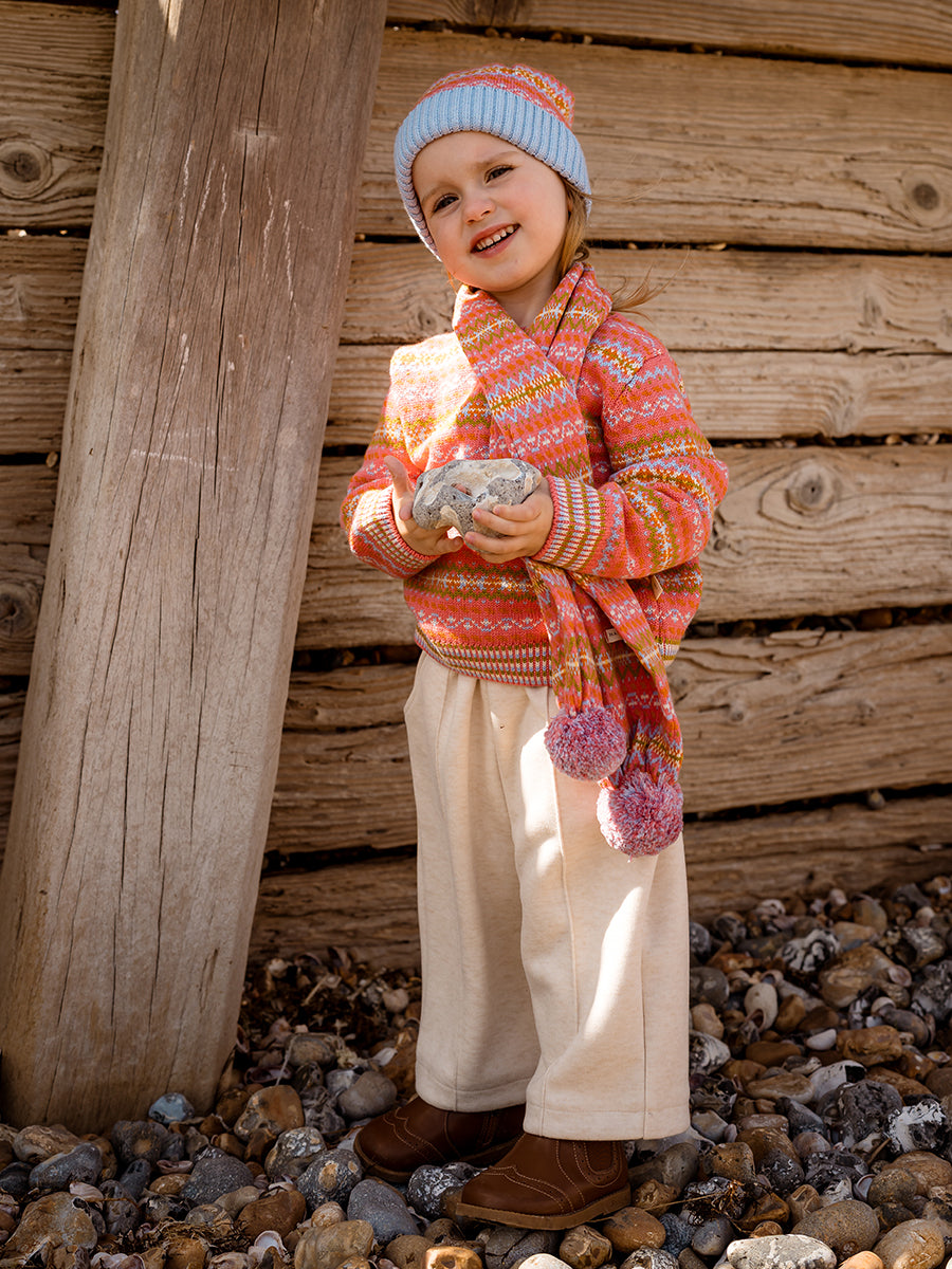 Crafted from the finest natural yarns - plush cashmere, extra-fine merino wool, and soft cotton - our knitwear wraps little ones in breathable warmth and everyday comfort. From timeless silhouettes to our signature Fair Isle patterns, each piece is designed and knitted in-house.
