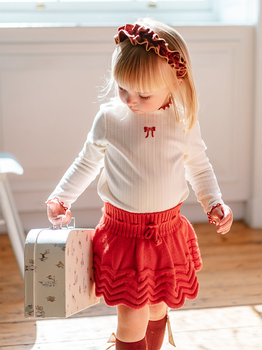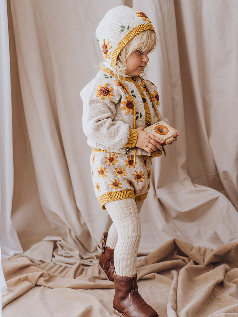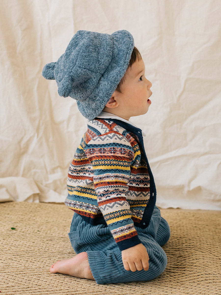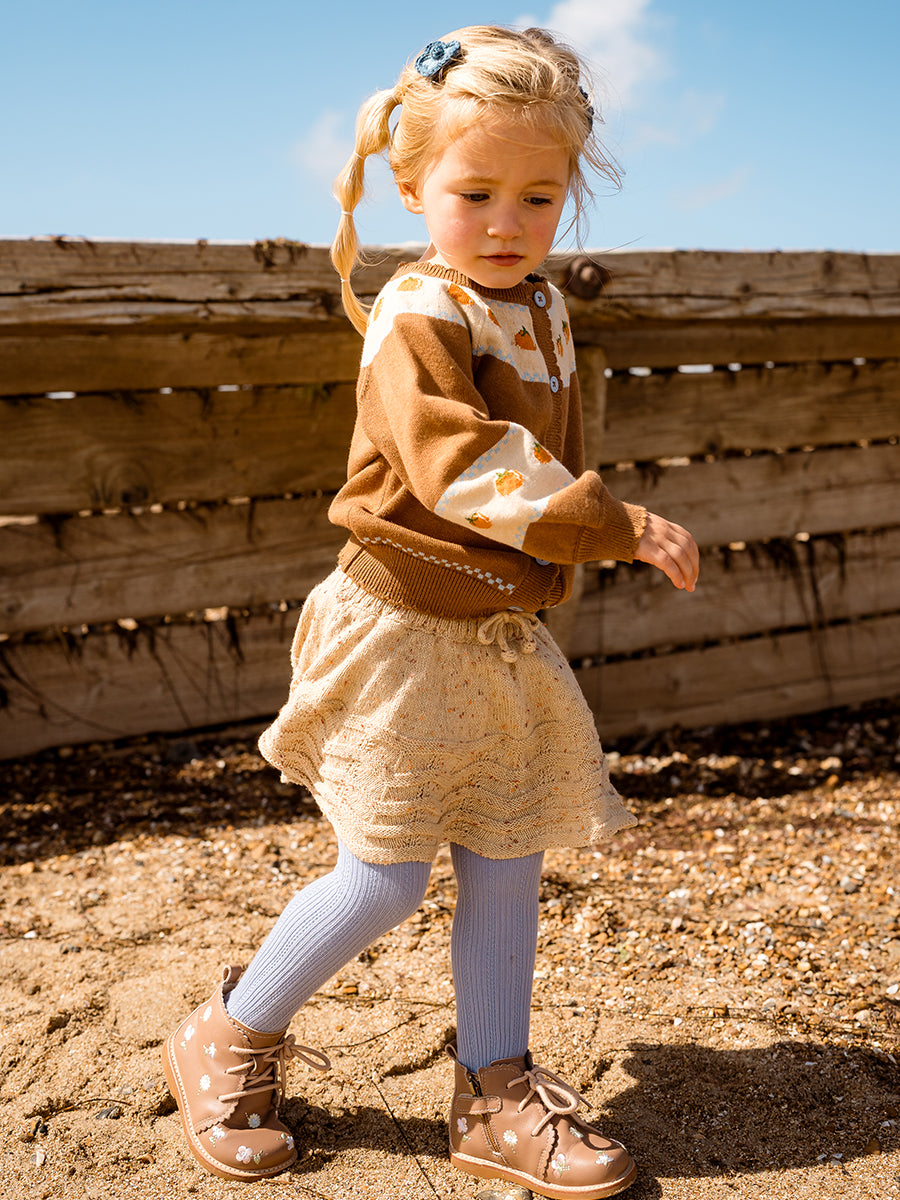 Crafted from the finest natural yarns - plush cashmere, extra-fine merino wool, and soft cotton - our knitwear wraps little ones in breathable warmth and everyday comfort. From timeless silhouettes to our signature Fair Isle patterns, each piece is designed and knitted in-house.