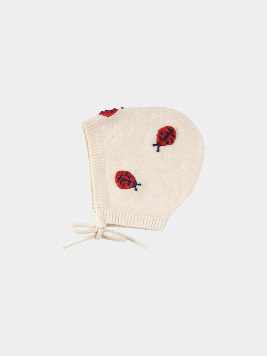 Quinn Hand-Embroidered Knitted Bonnet, Almond White