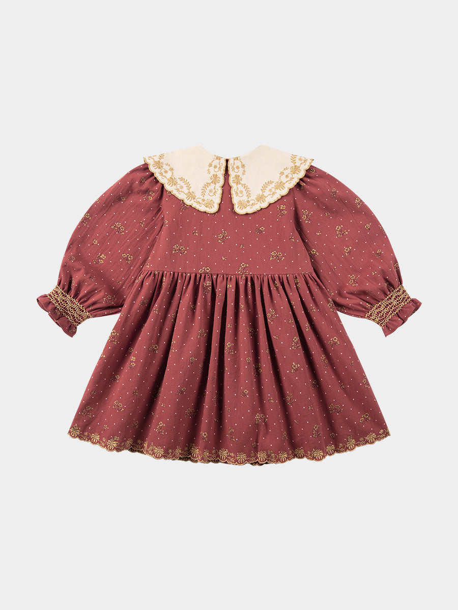 Jennie Hand-Smocked Dress, Wildflower Polka, Burgundy