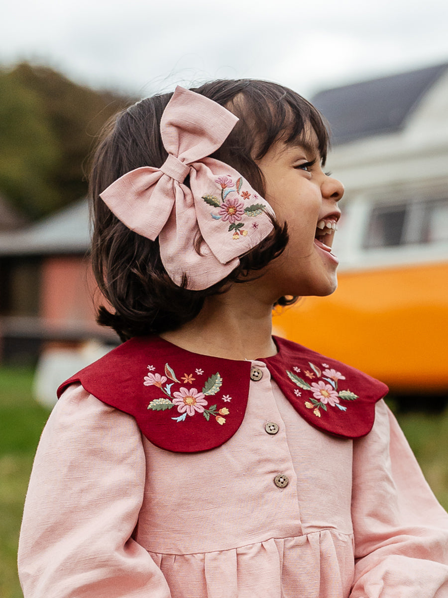 Como Embroidered Hair Clip, Princess Pink