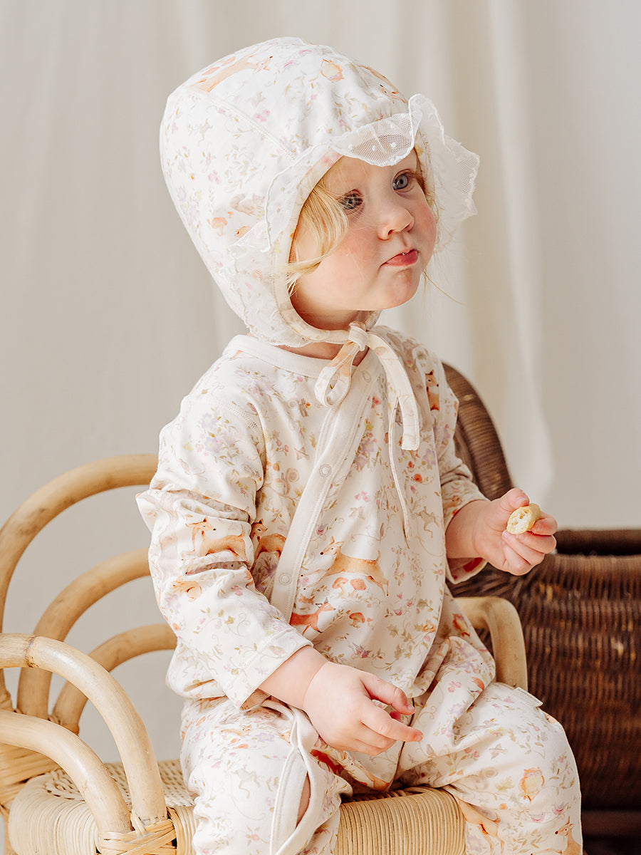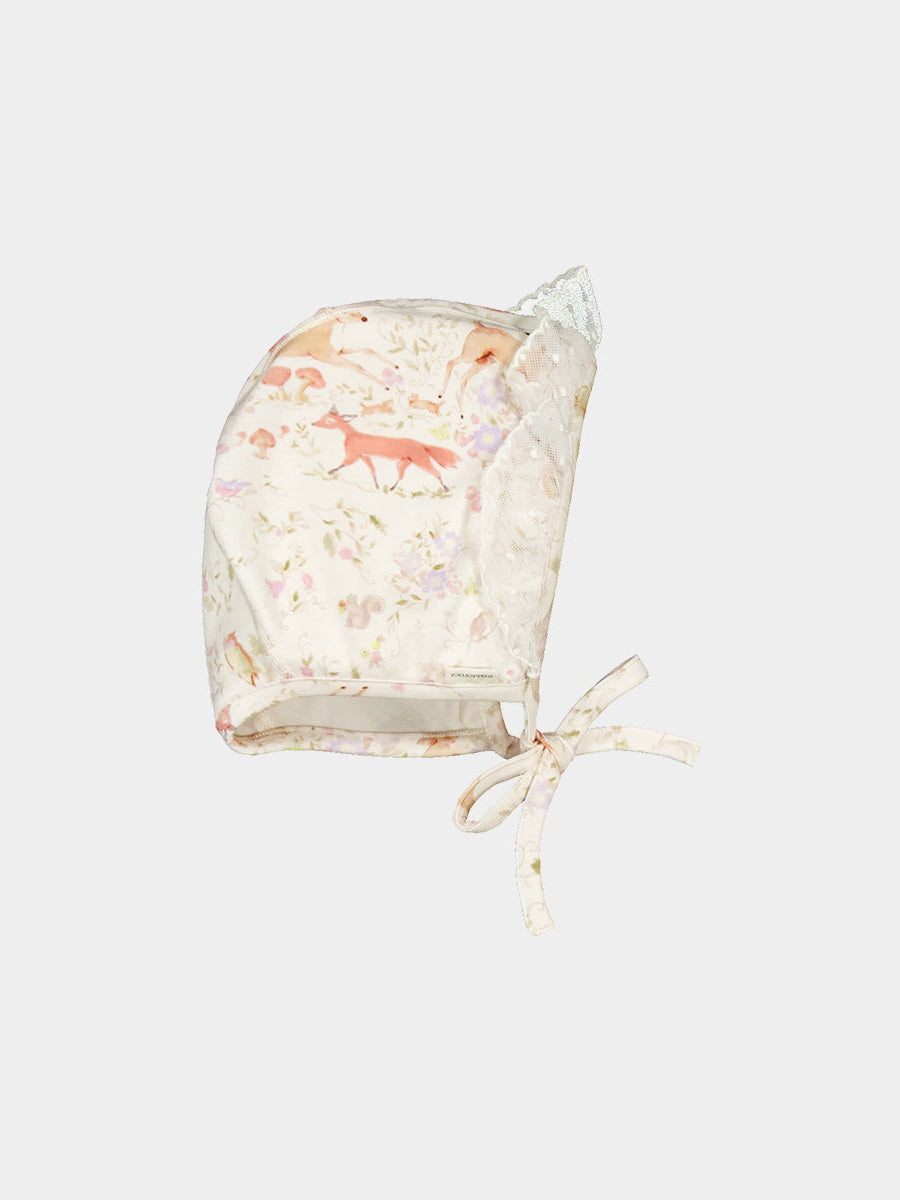 Gardenia Organic Cotton Jersey Bonnet, Happy Forest
