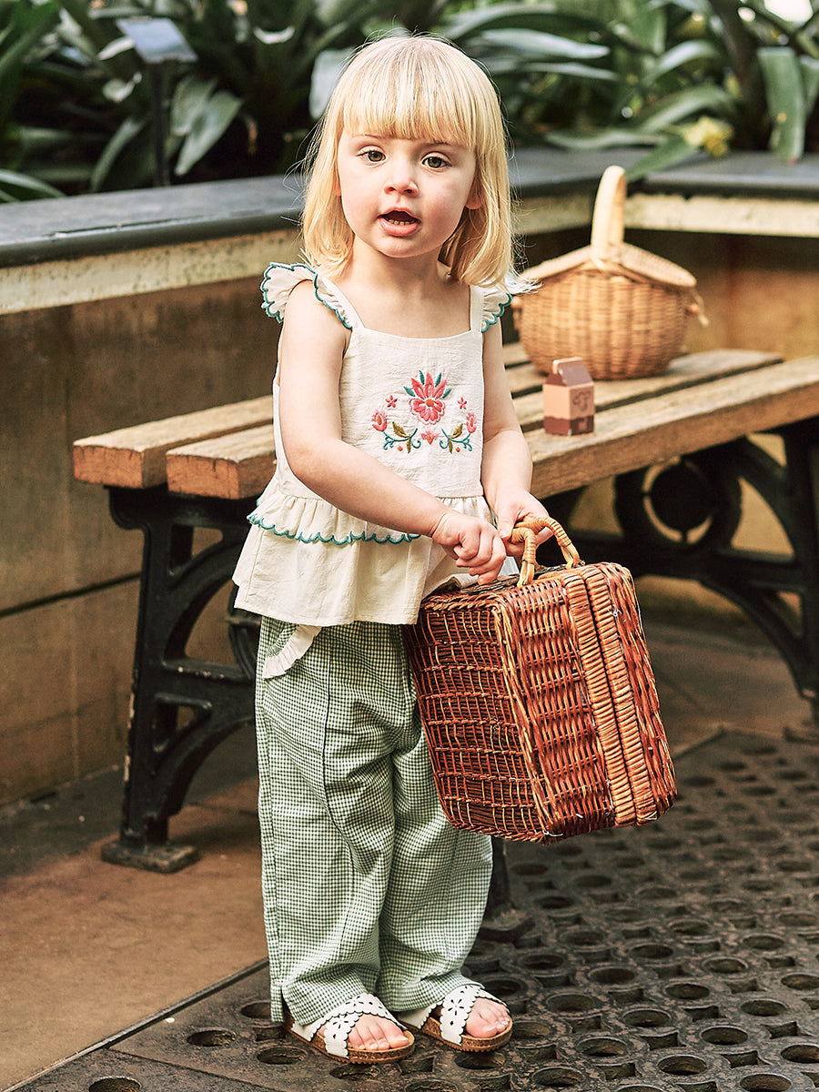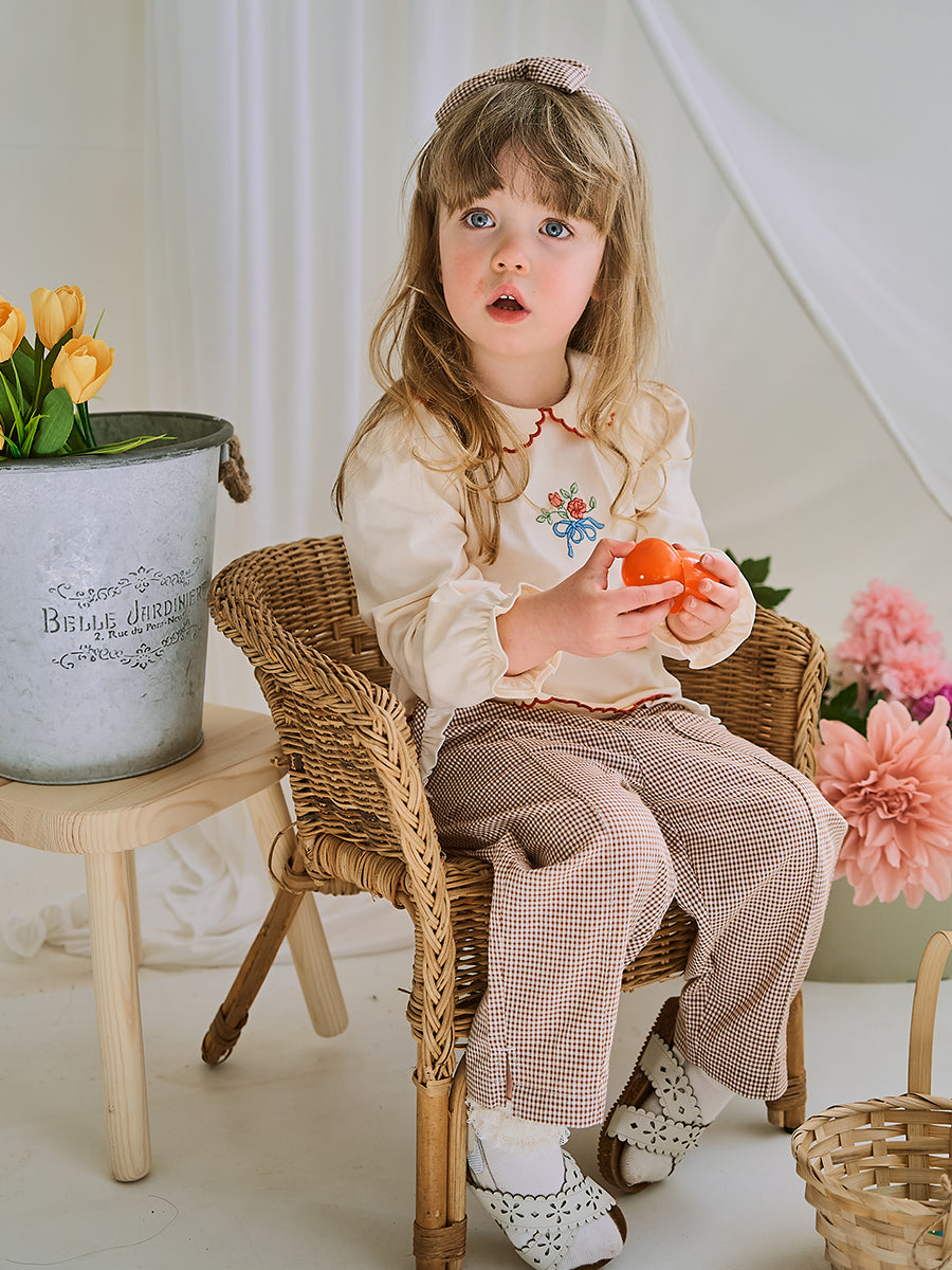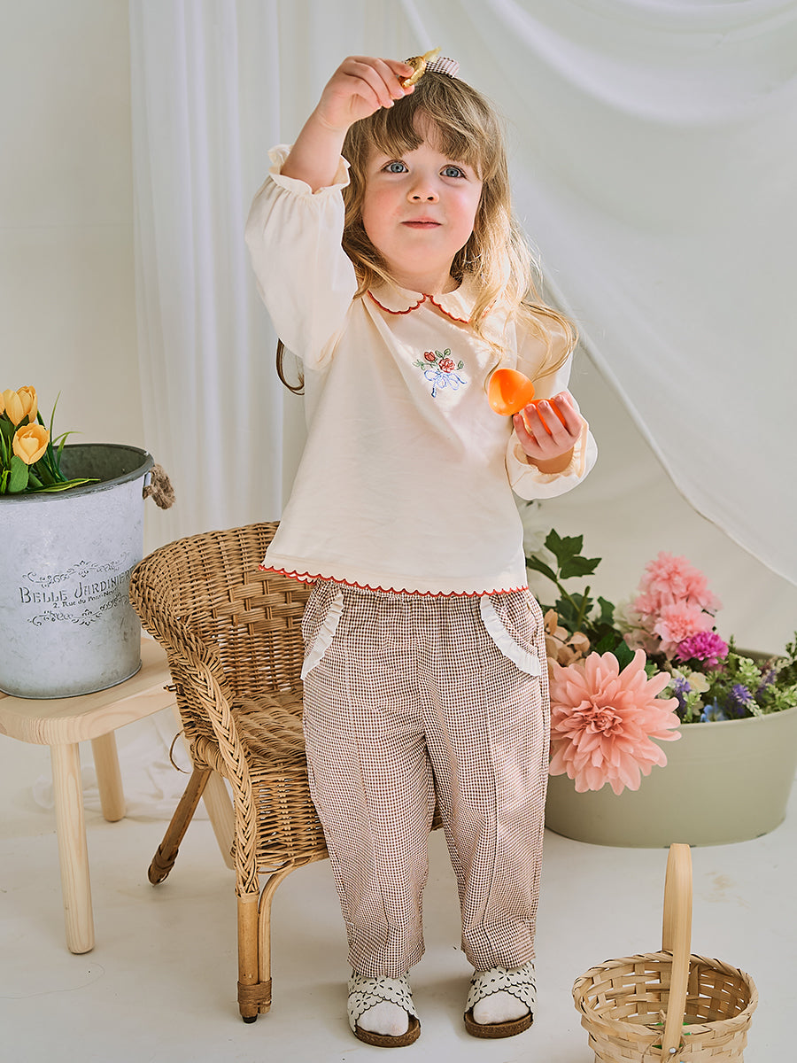 Camila Quilted Trousers, Strawberry Flower Field, White