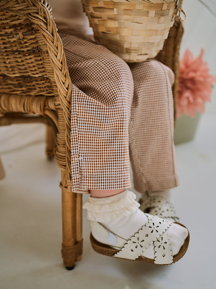 Jessielle Ankle Socks with Floral Ruffle, Caramel & Crème Brulee