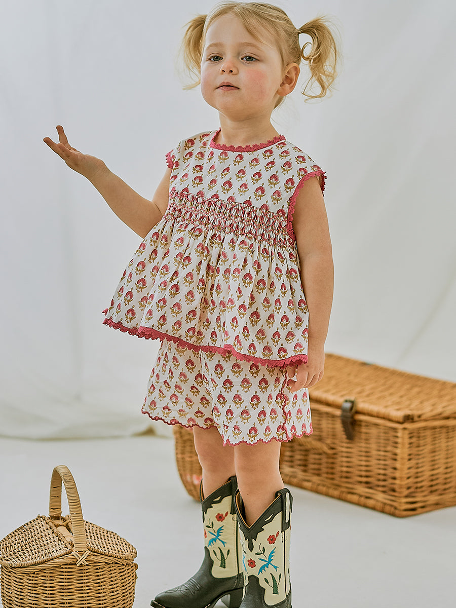 Izzy Hand-Smocking Dress, Vintage Bouquet, Rose
