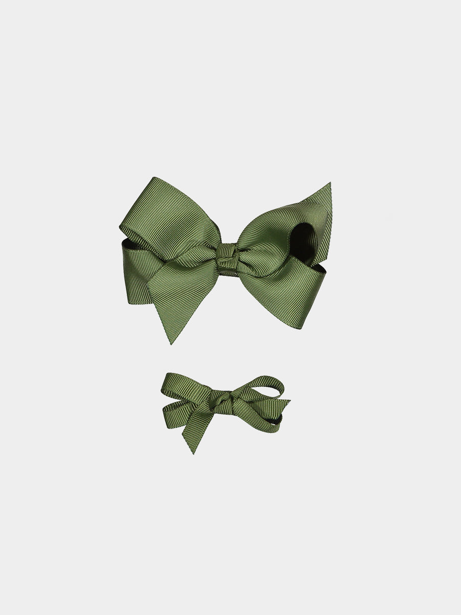 Haarschleifen-Clip-Set mit Bändern, Herbstgrün