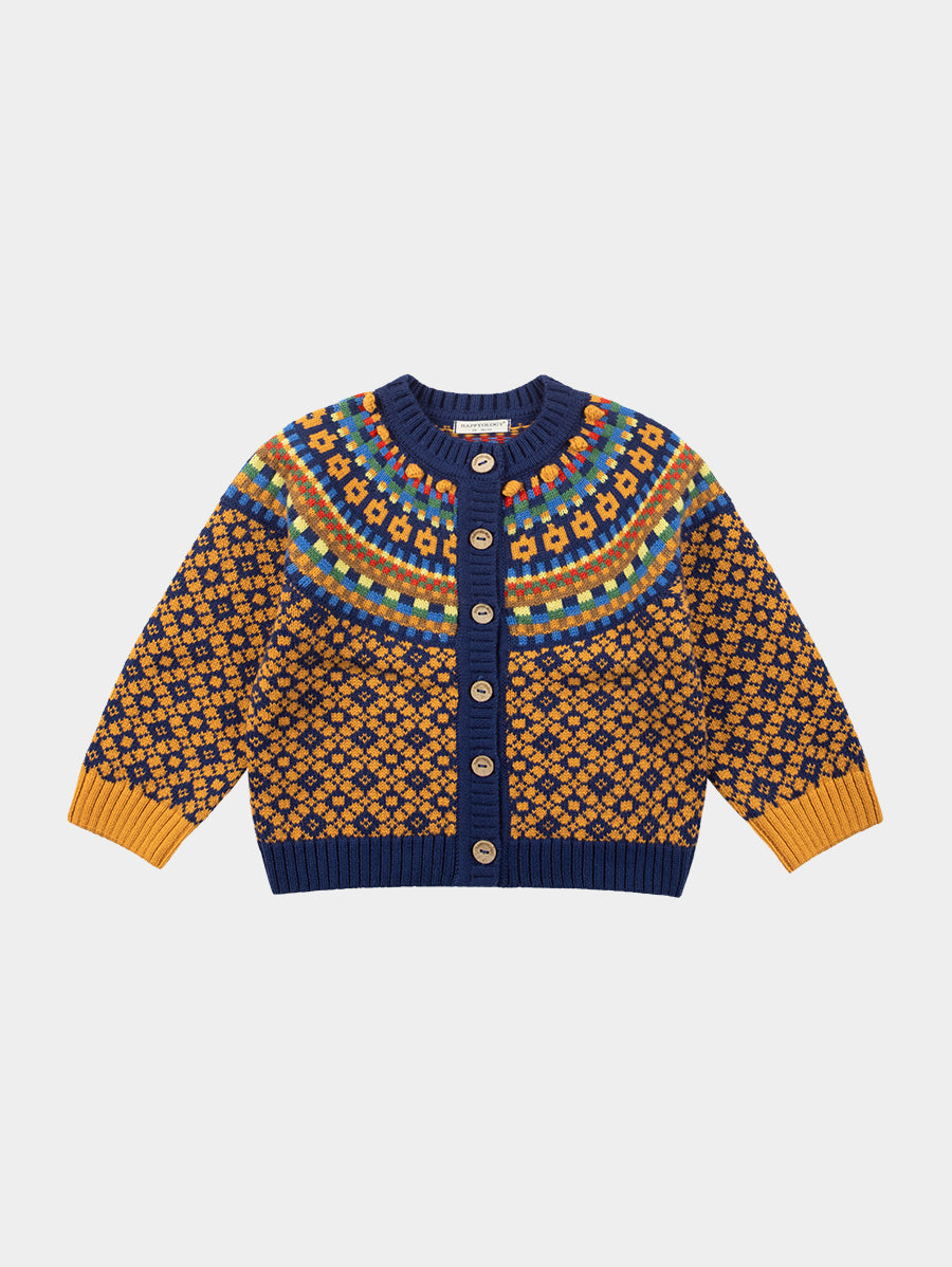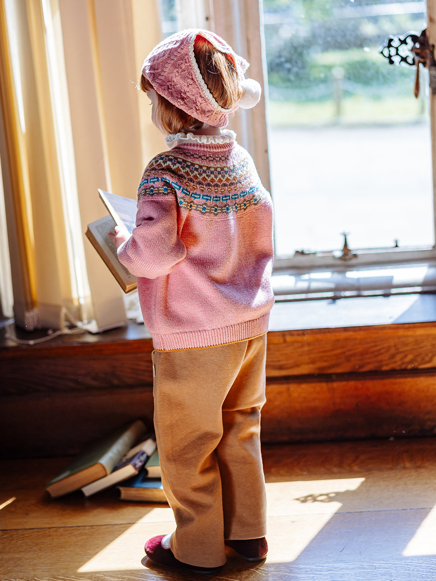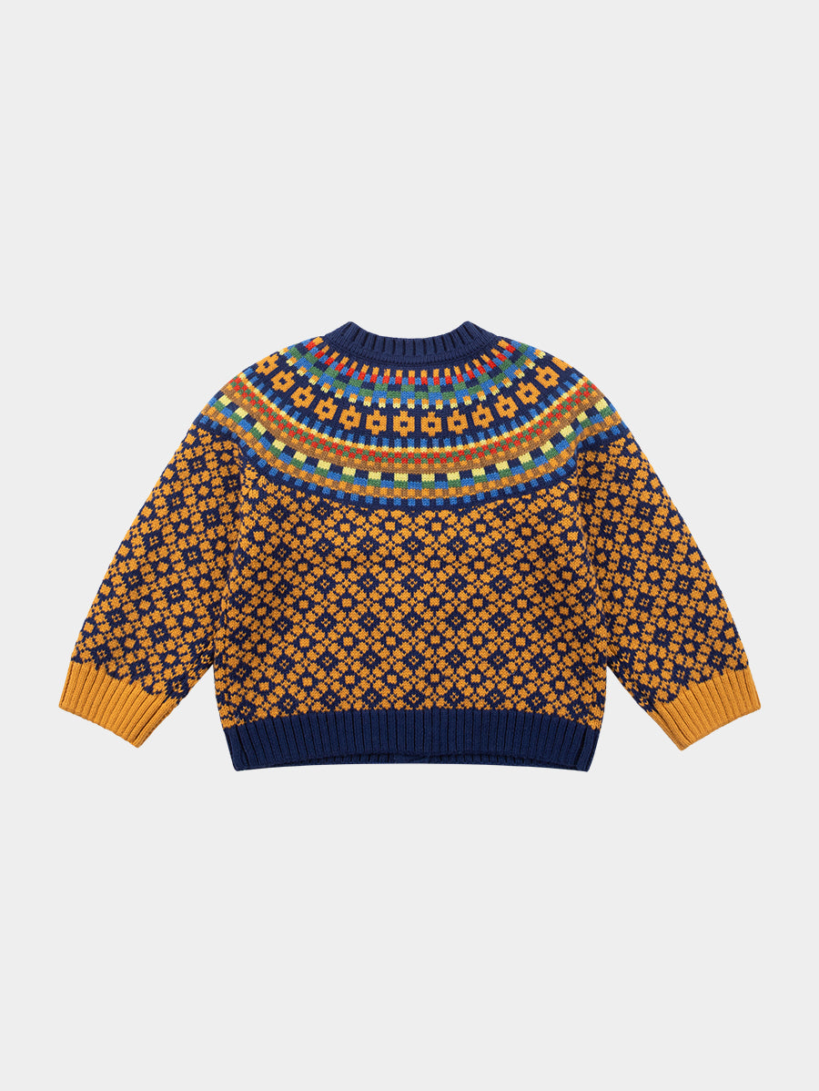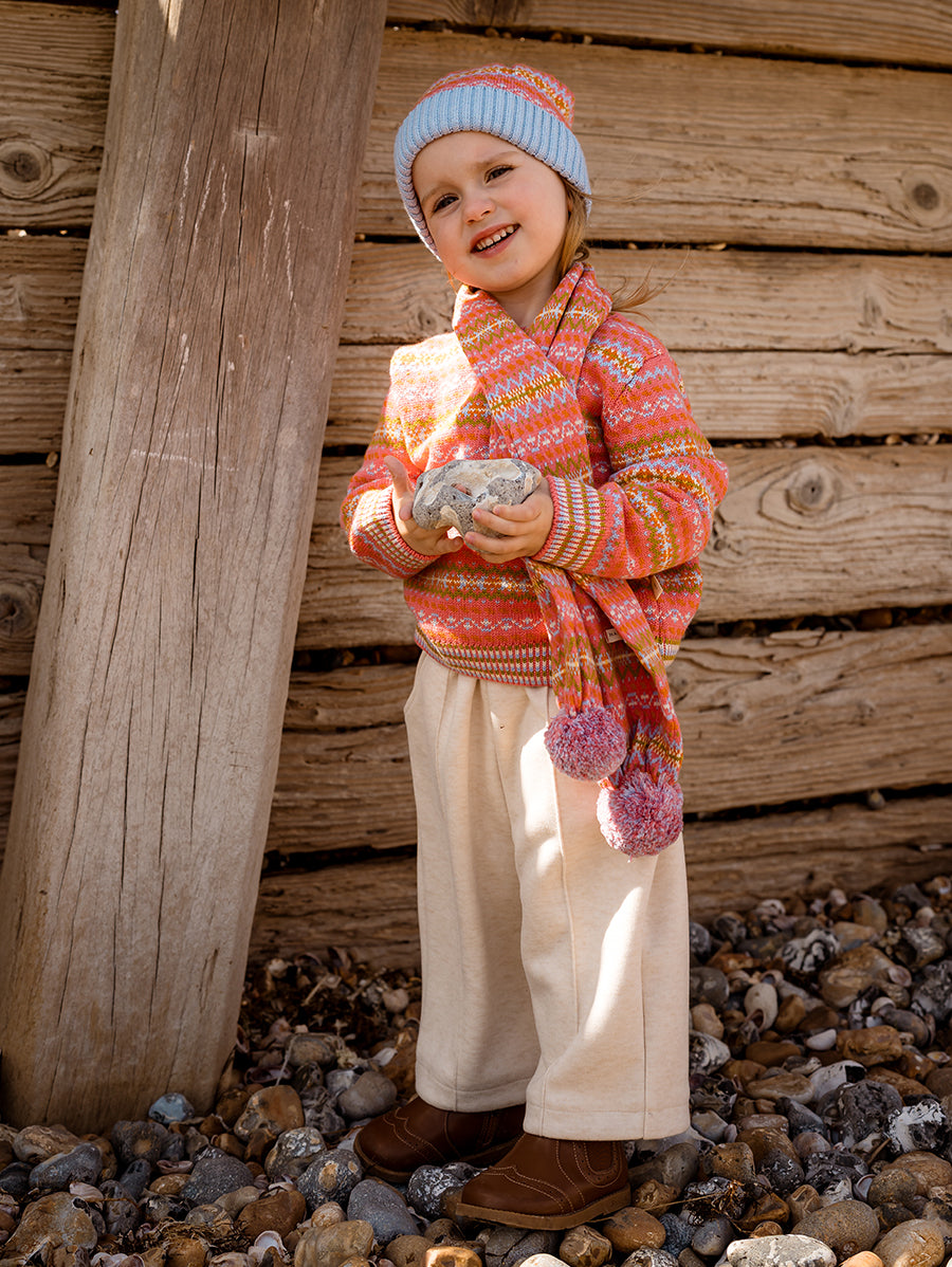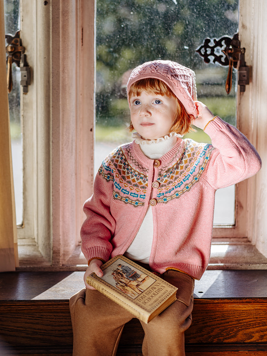 Crafted from the finest natural yarns - plush cashmere, extra-fine merino wool, and soft cotton - our knitwear wraps little ones in breathable warmth and everyday comfort. From timeless silhouettes to our signature Fair Isle patterns, each piece is designed and knitted in-house.