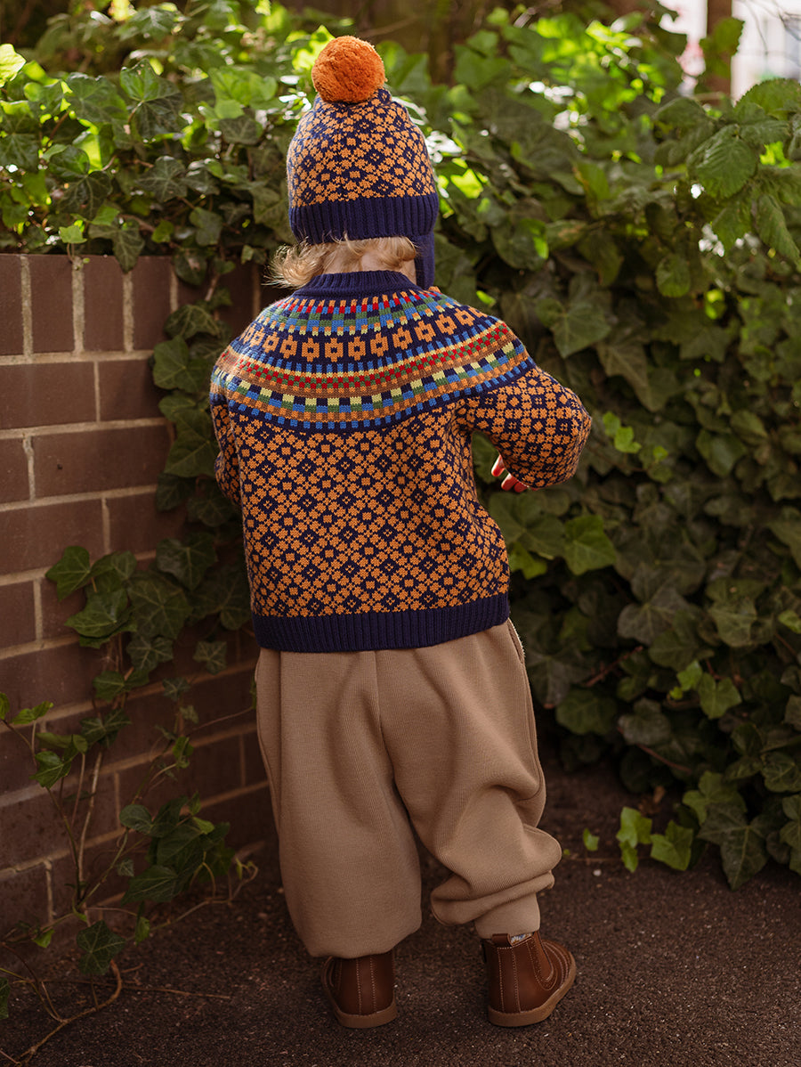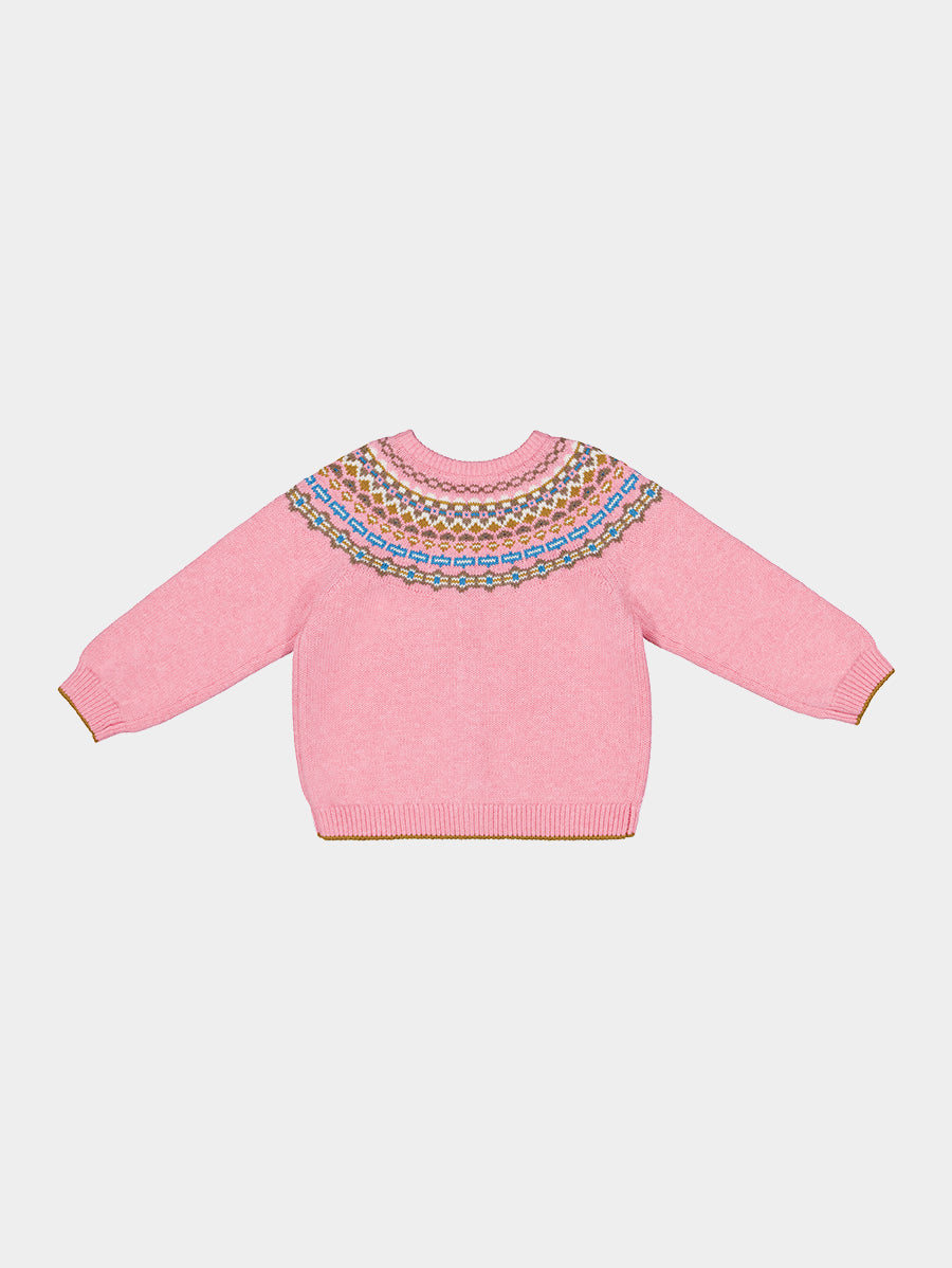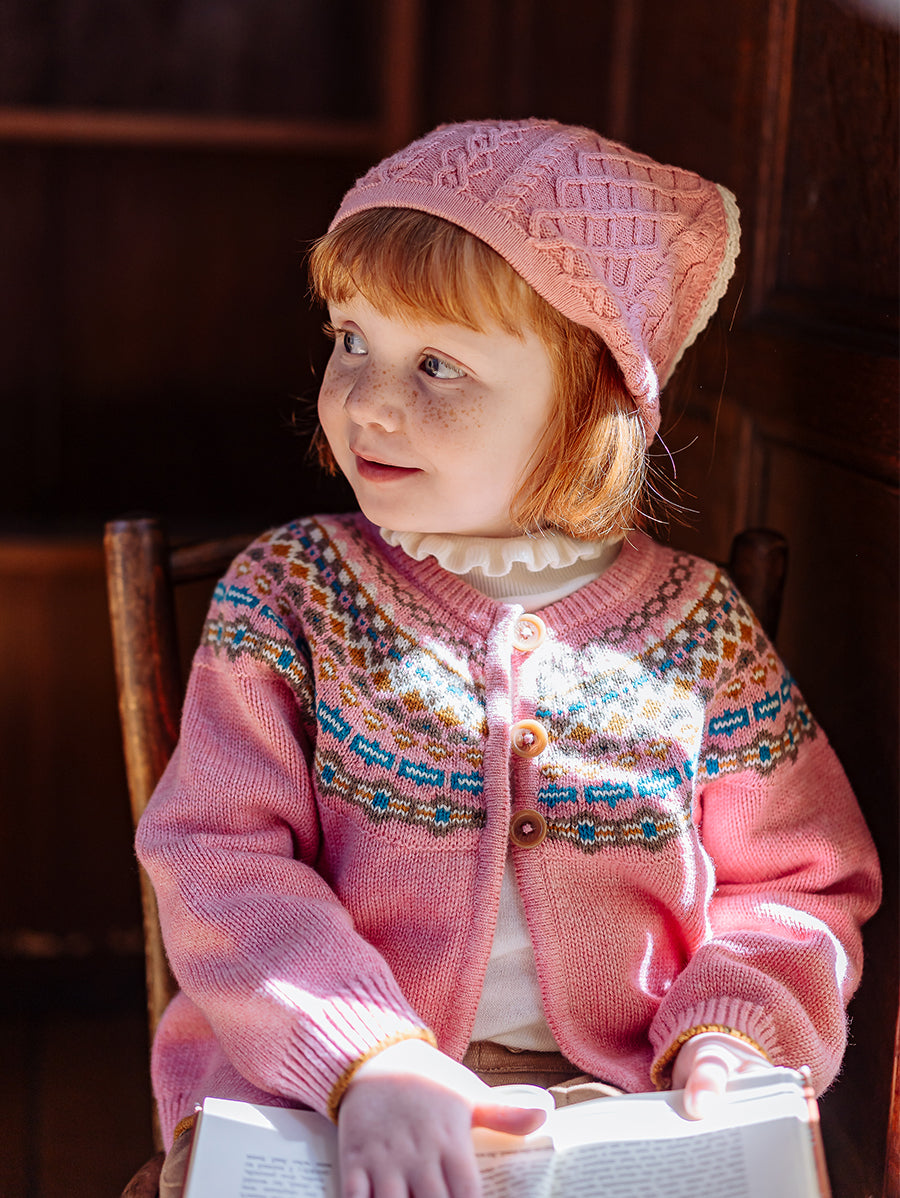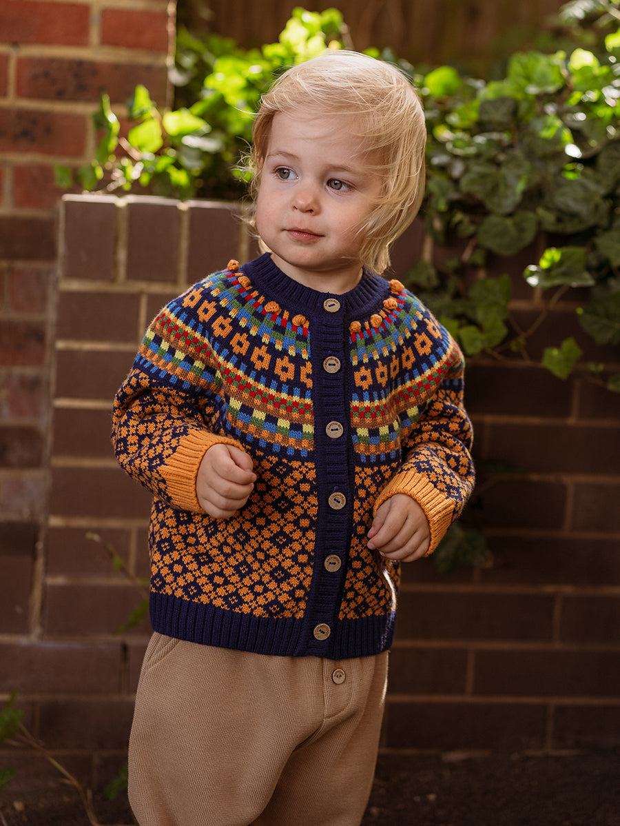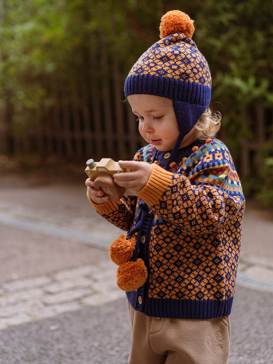 Crafted from the finest natural yarns - plush cashmere, extra-fine merino wool, and soft cotton - our knitwear wraps little ones in breathable warmth and everyday comfort. From timeless silhouettes to our signature Fair Isle patterns, each piece is designed and knitted in-house.