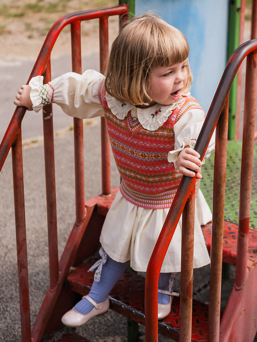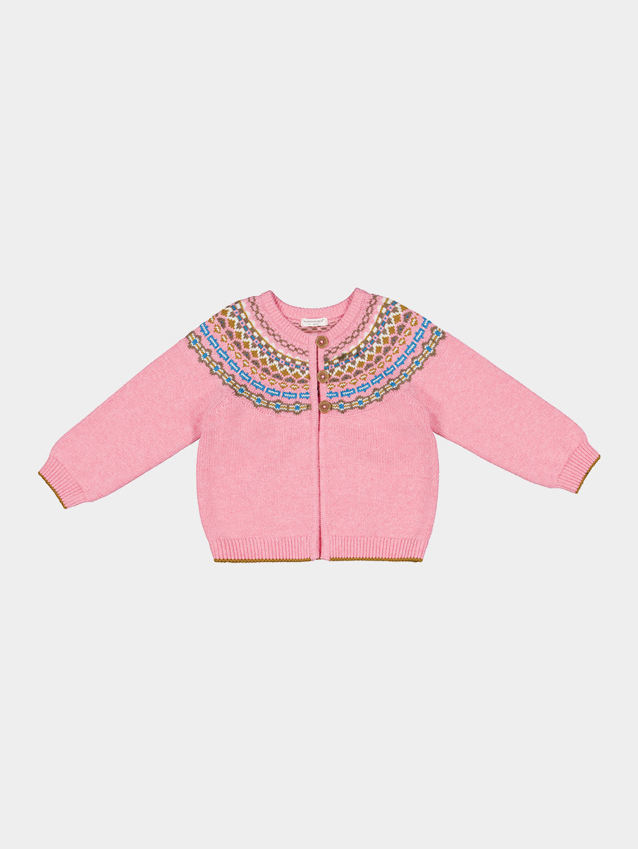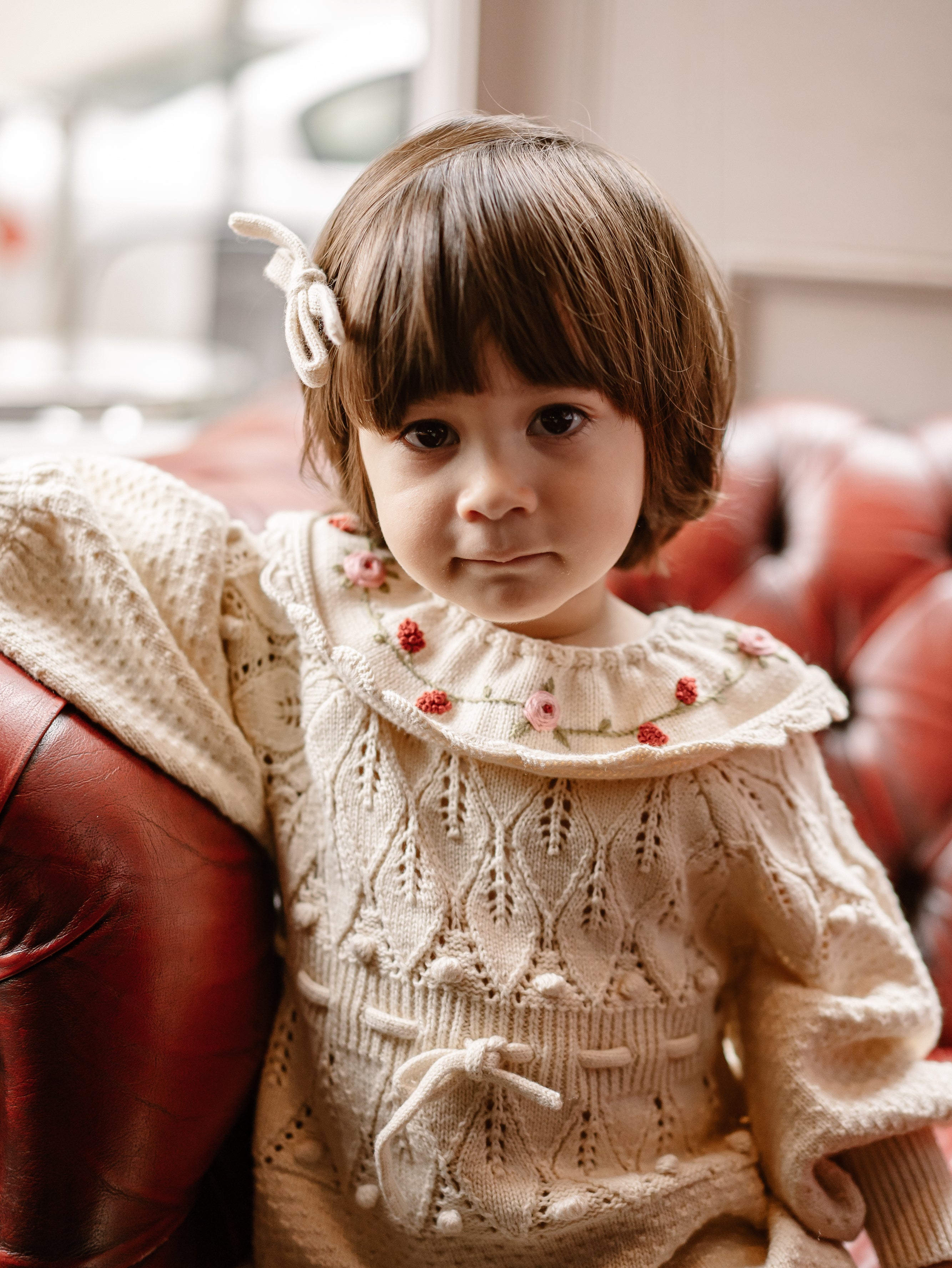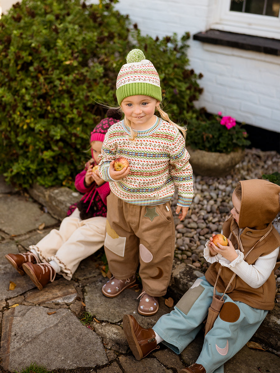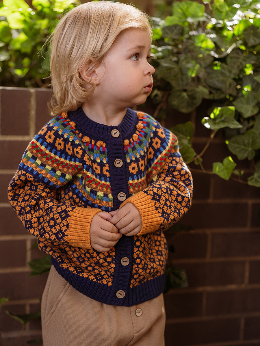 Crafted from the finest natural yarns - plush cashmere, extra-fine merino wool, and soft cotton - our knitwear wraps little ones in breathable warmth and everyday comfort. From timeless silhouettes to our signature Fair Isle patterns, each piece is designed and knitted in-house.