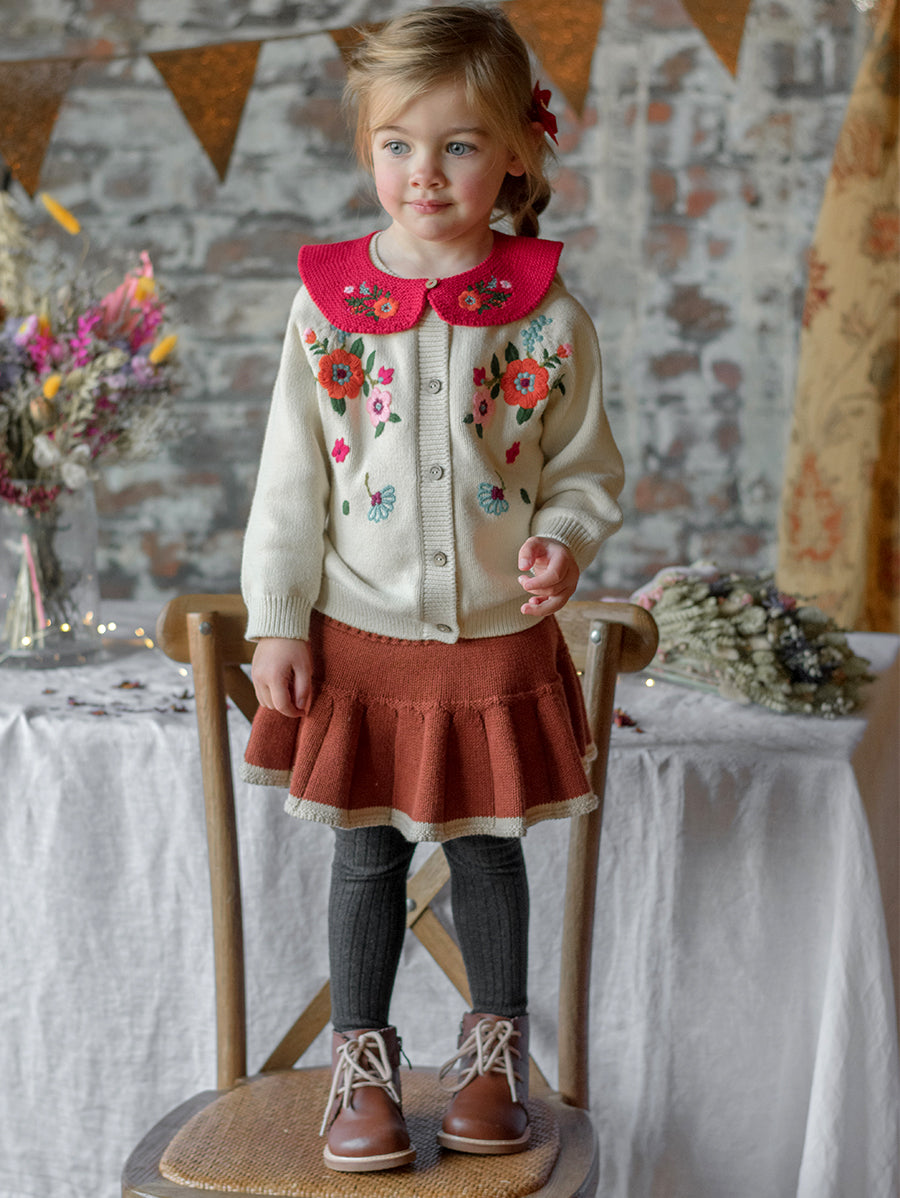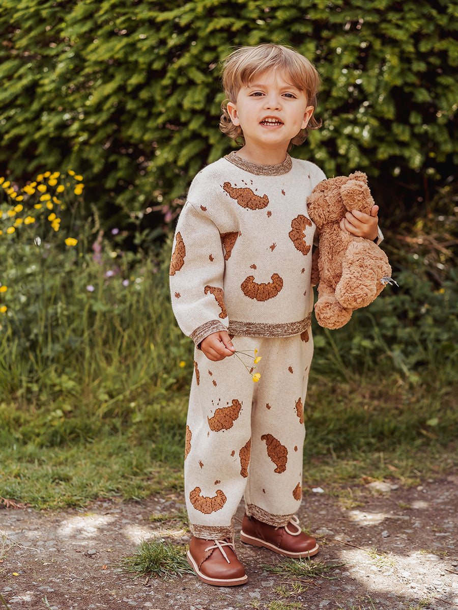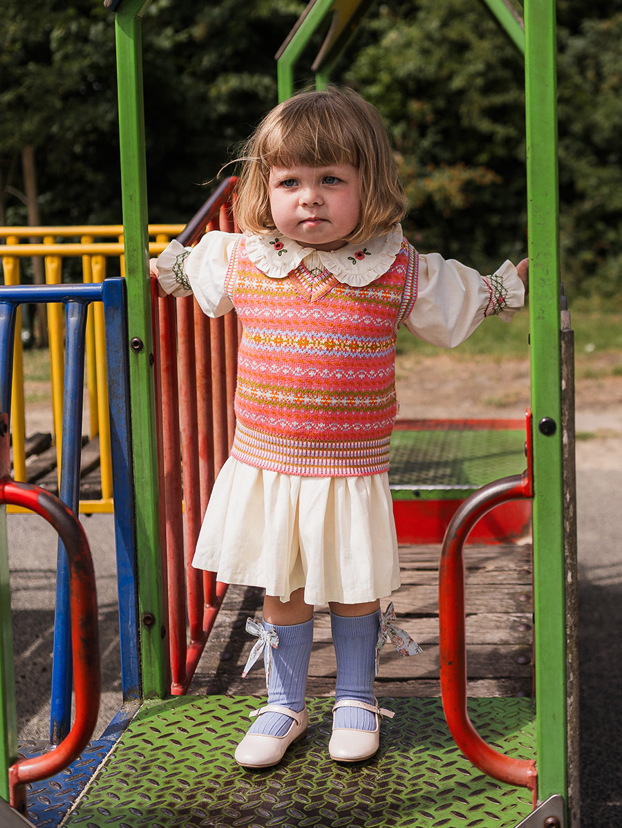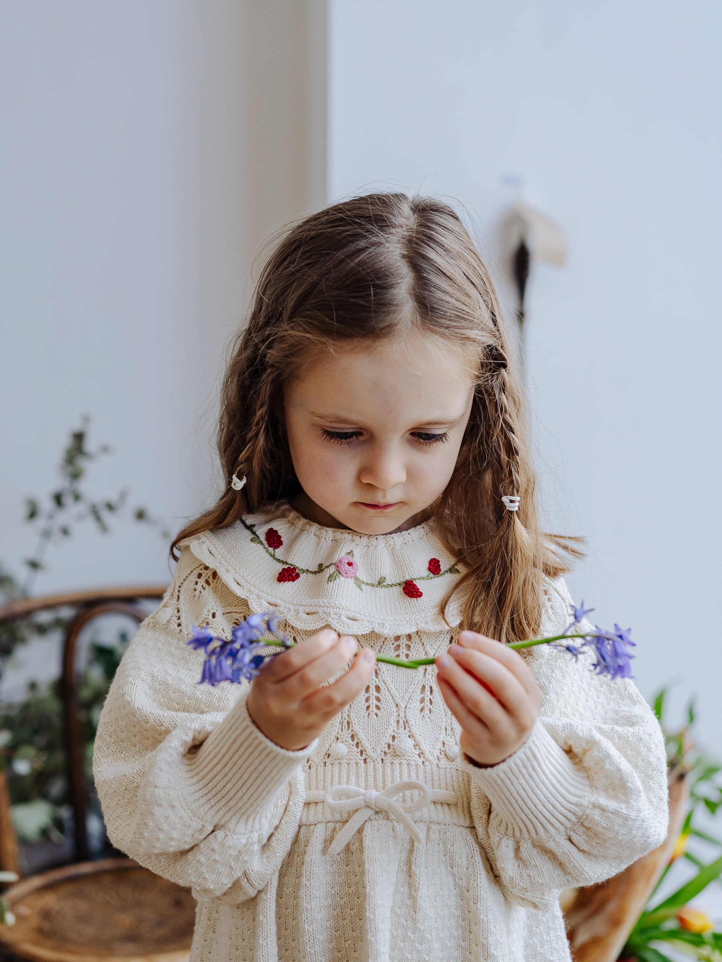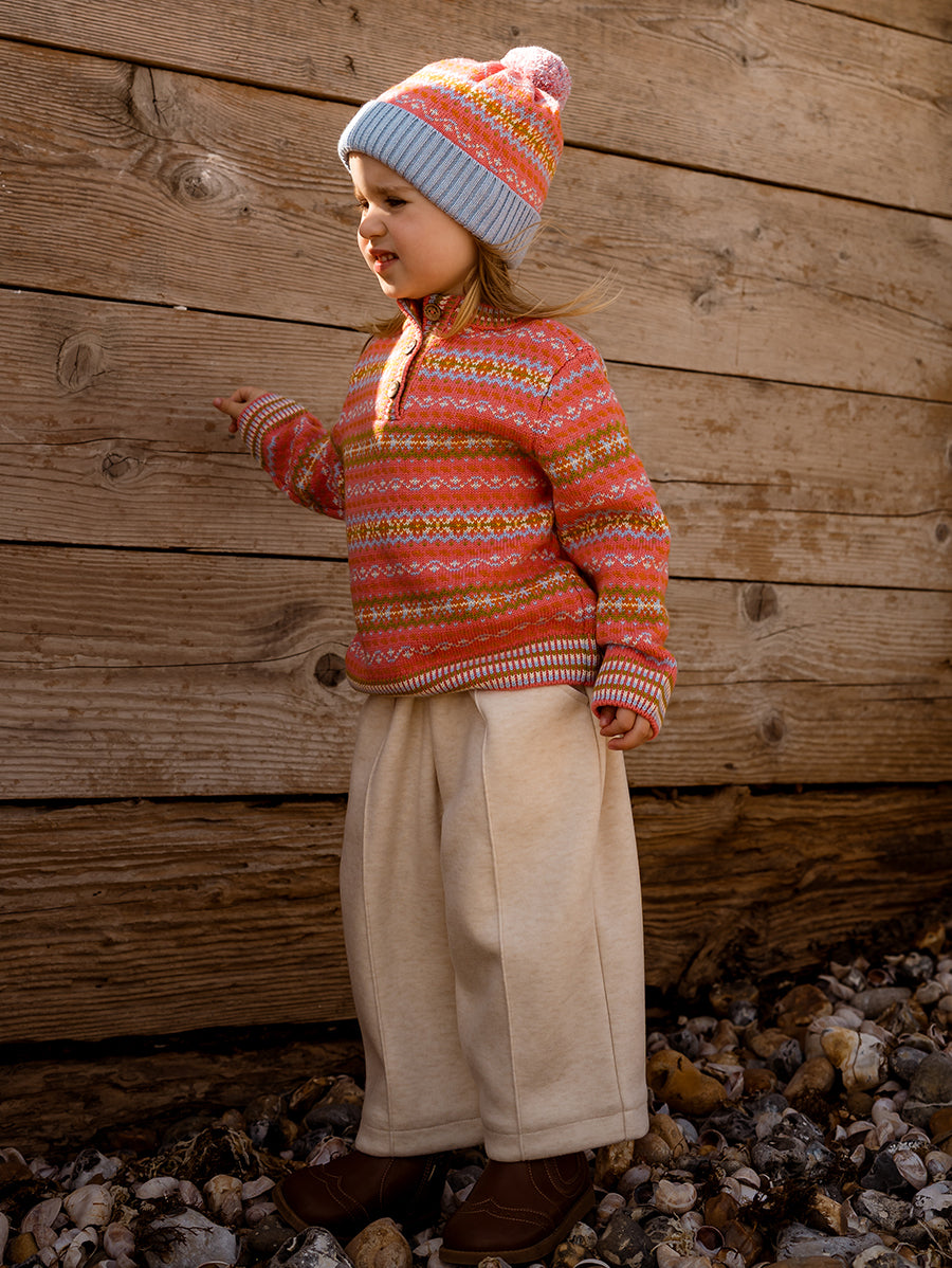 Crafted from the finest natural yarns - plush cashmere, extra-fine merino wool, and soft cotton - our knitwear wraps little ones in breathable warmth and everyday comfort. From timeless silhouettes to our signature Fair Isle patterns, each piece is designed and knitted in-house.