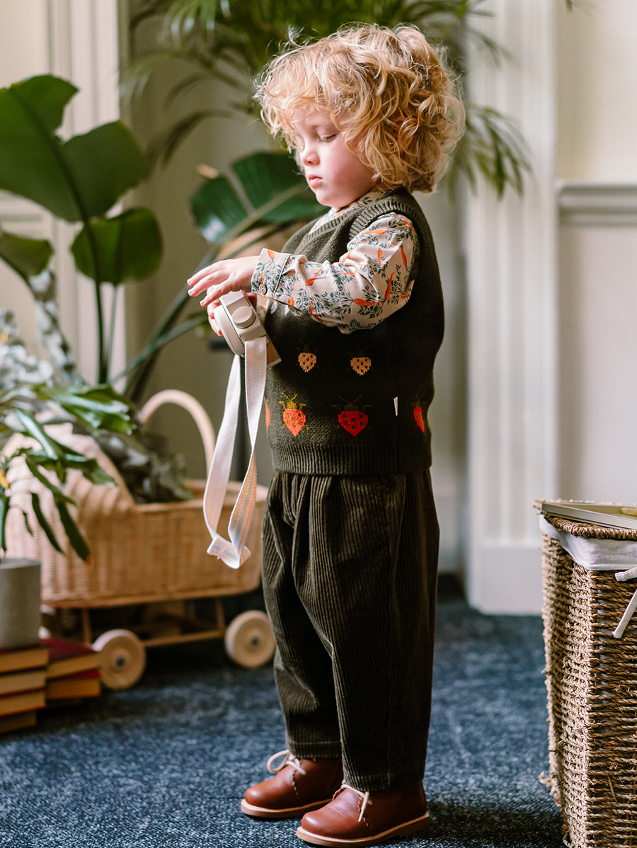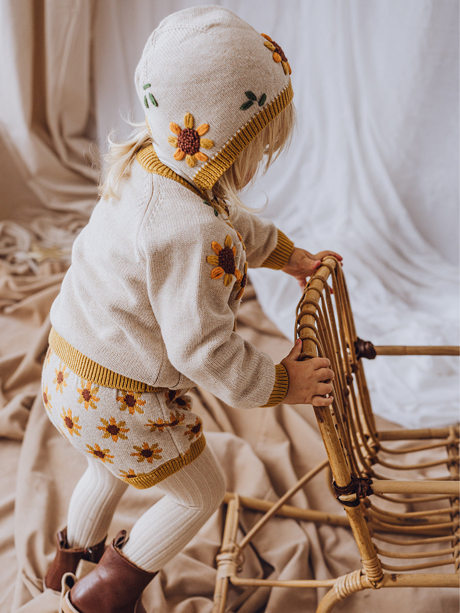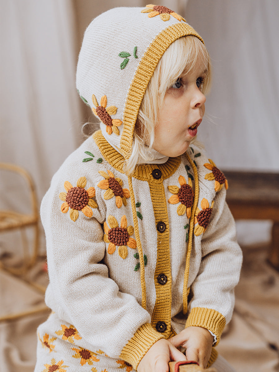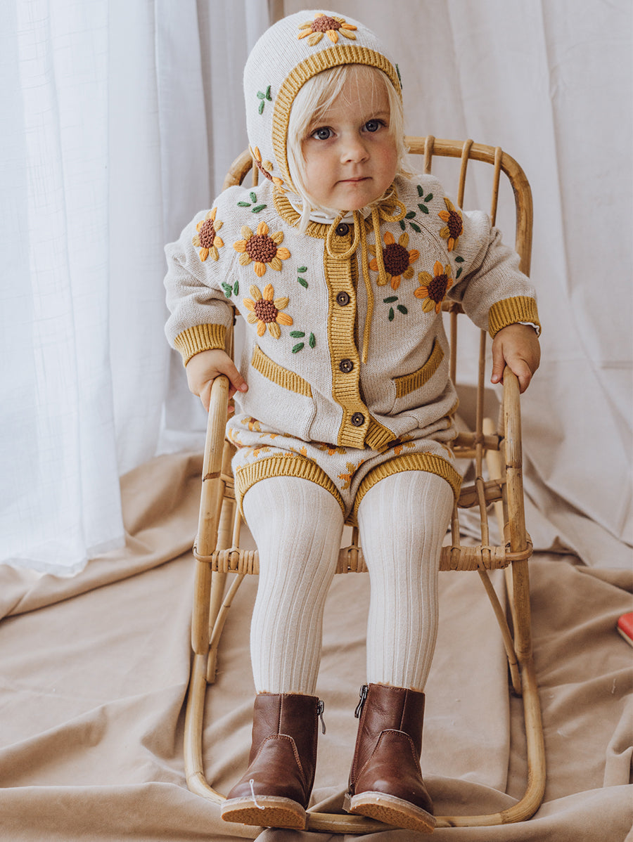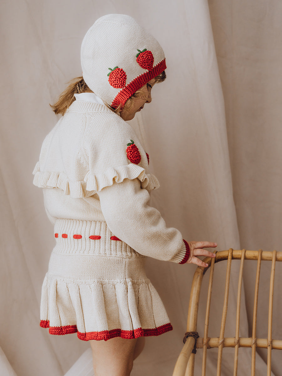 Crafted from the finest natural yarns - plush cashmere, extra-fine merino wool, and soft cotton - our knitwear wraps little ones in breathable warmth and everyday comfort. From timeless silhouettes to our signature Fair Isle patterns, each piece is designed and knitted in-house.
