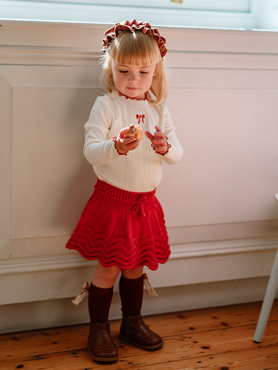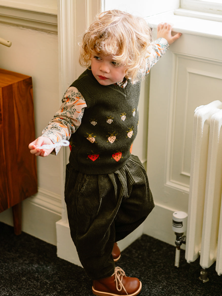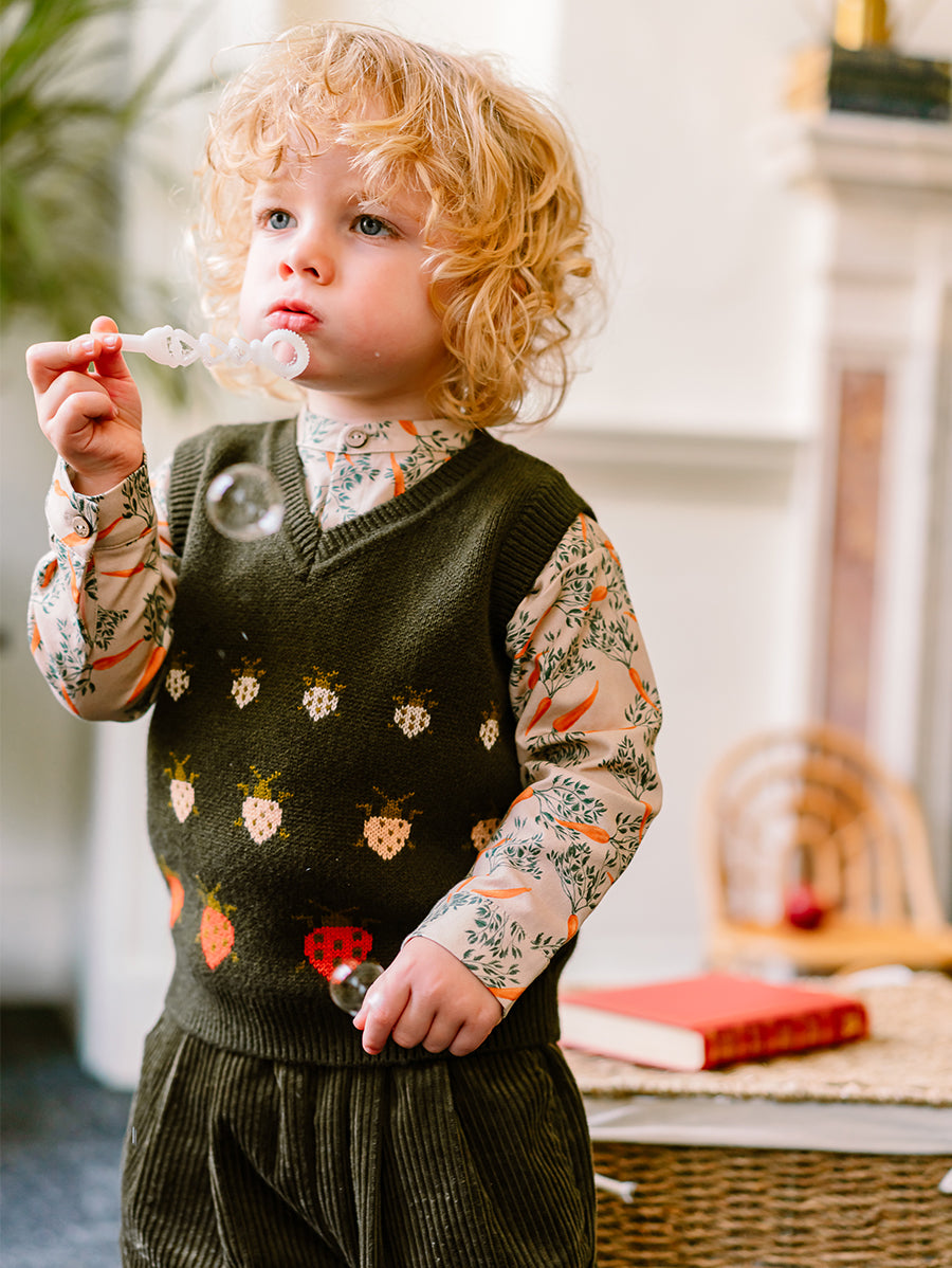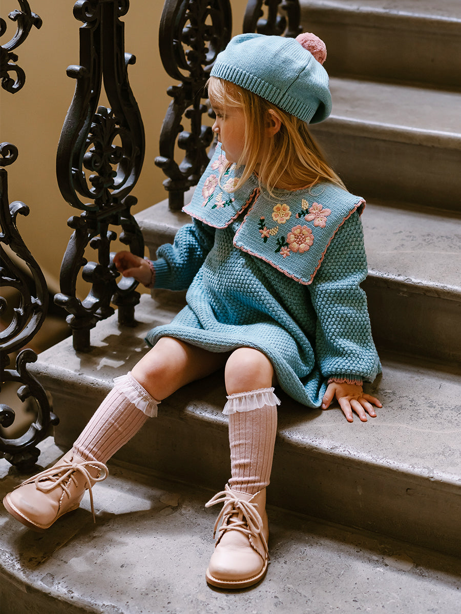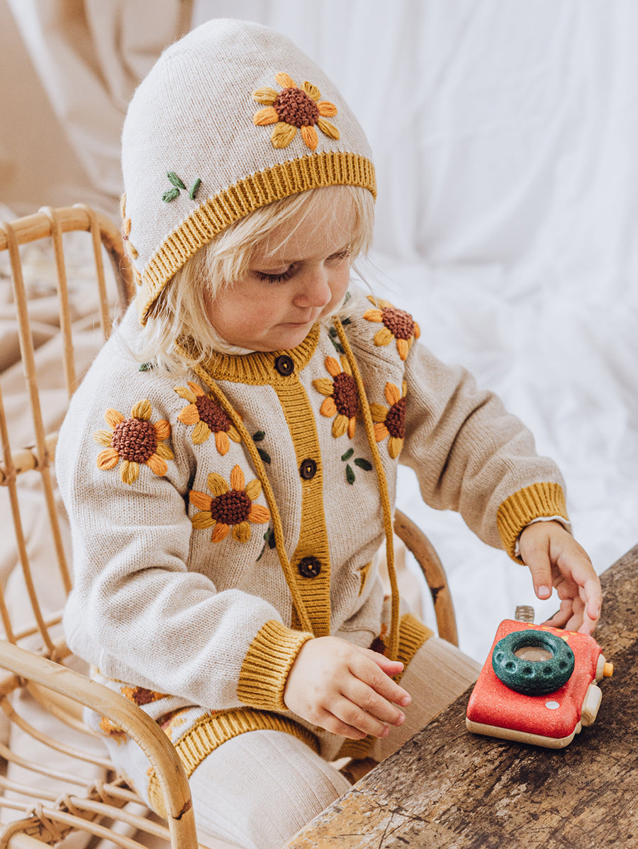 Crafted from the finest natural yarns - plush cashmere, extra-fine merino wool, and soft cotton - our knitwear wraps little ones in breathable warmth and everyday comfort. From timeless silhouettes to our signature Fair Isle patterns, each piece is designed and knitted in-house.