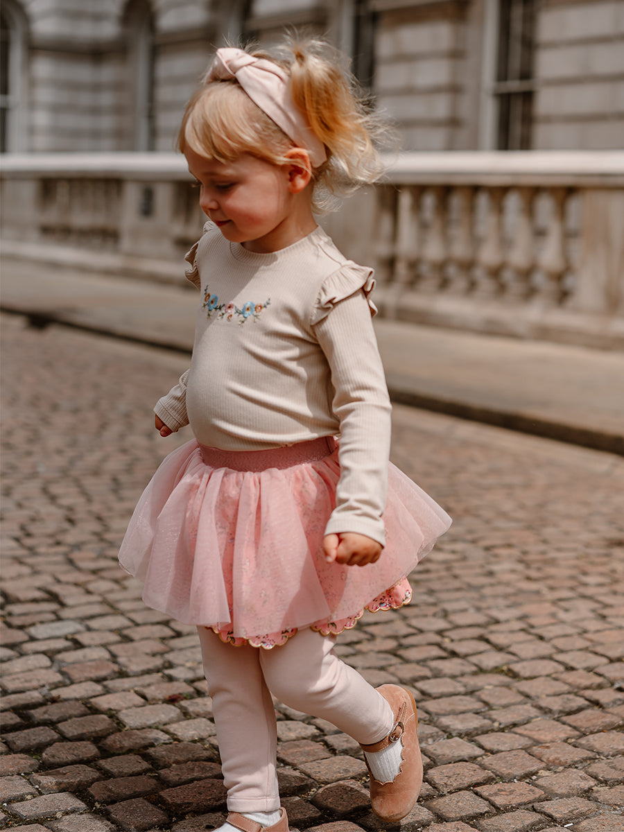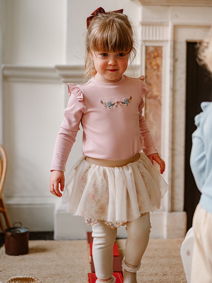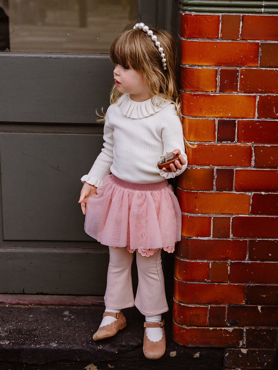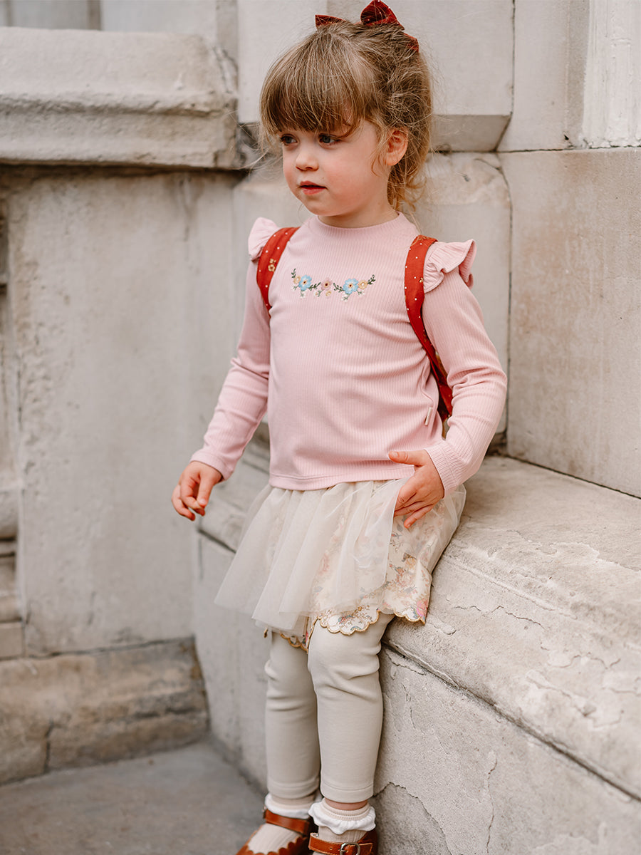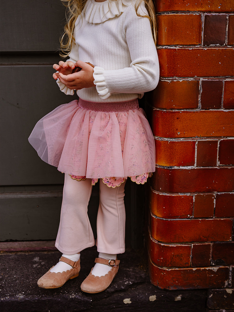 Jessielle Ankle Socks with Floral Ruffle, Misty Pink & Crème Brulee