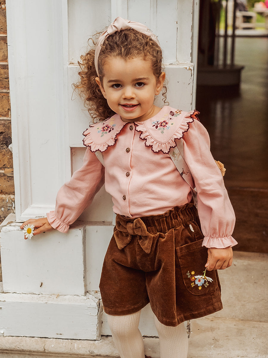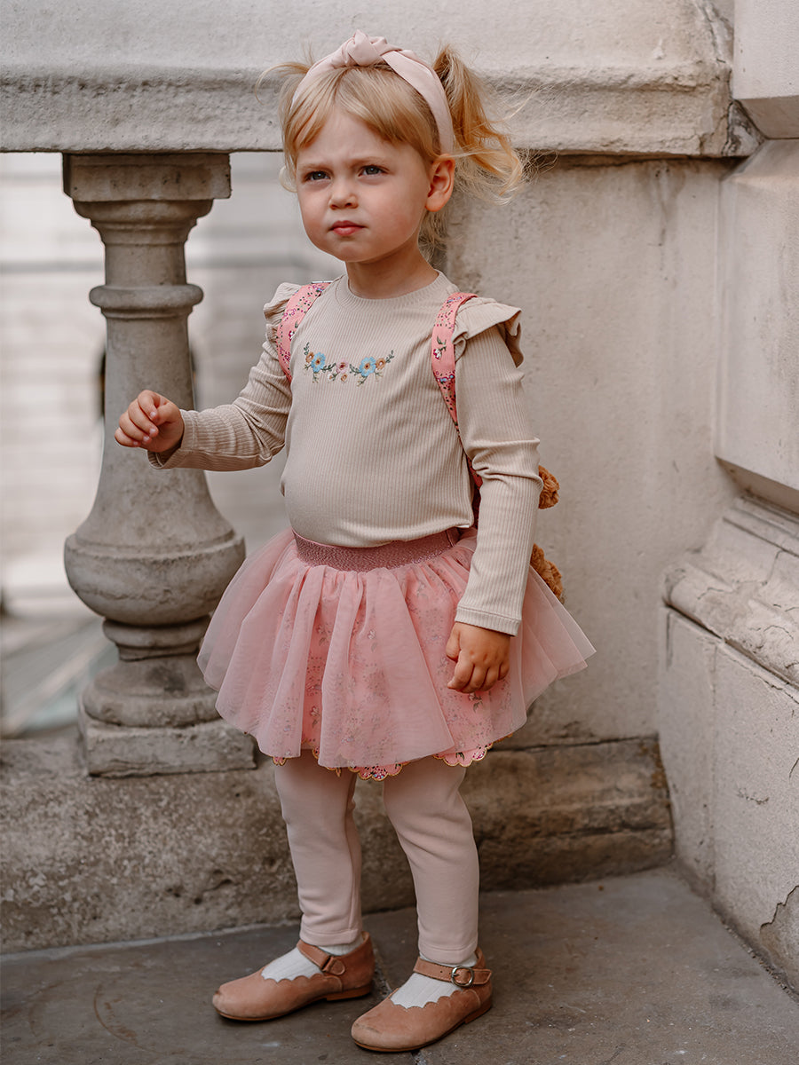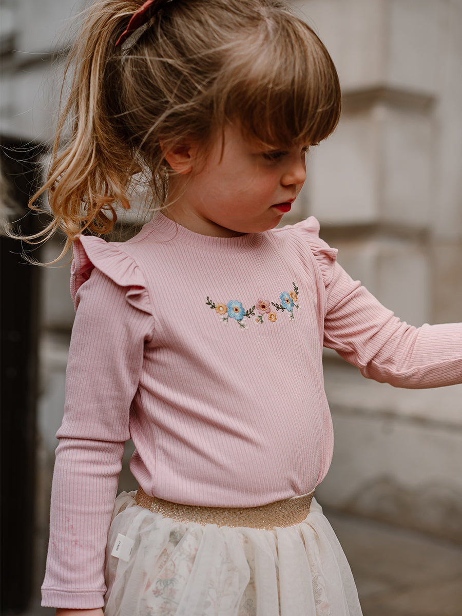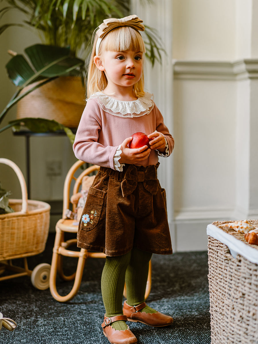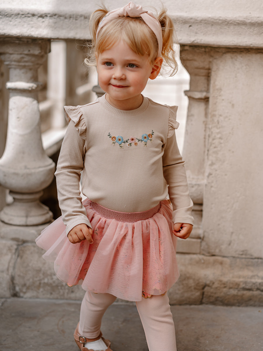 Jessielle Ankle Socks with Floral Ruffle, Misty Pink & Crème Brulee