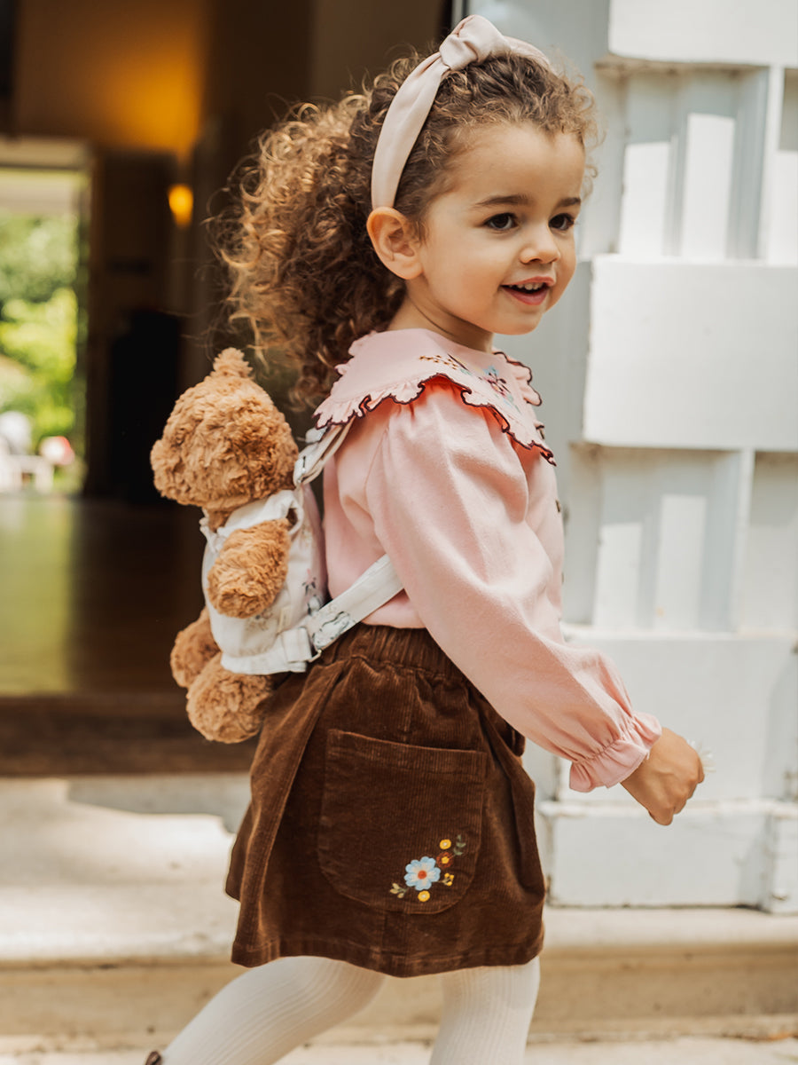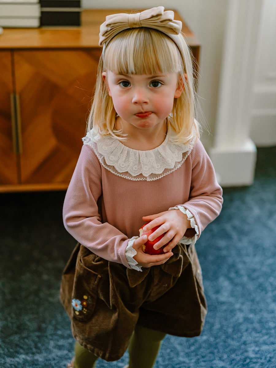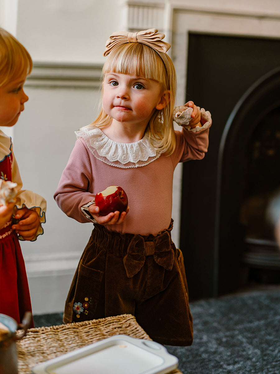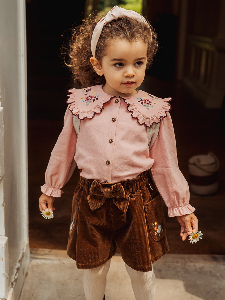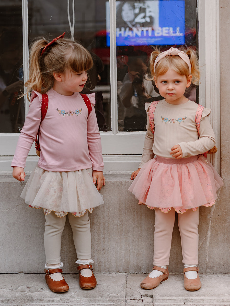 Jessielle Ankle Socks with Floral Ruffle, Misty Pink & Crème Brulee