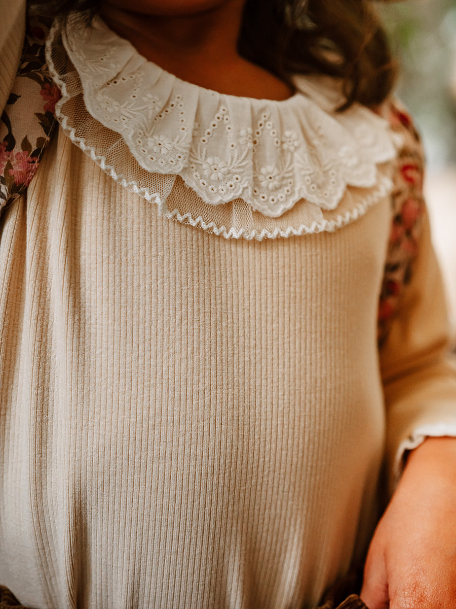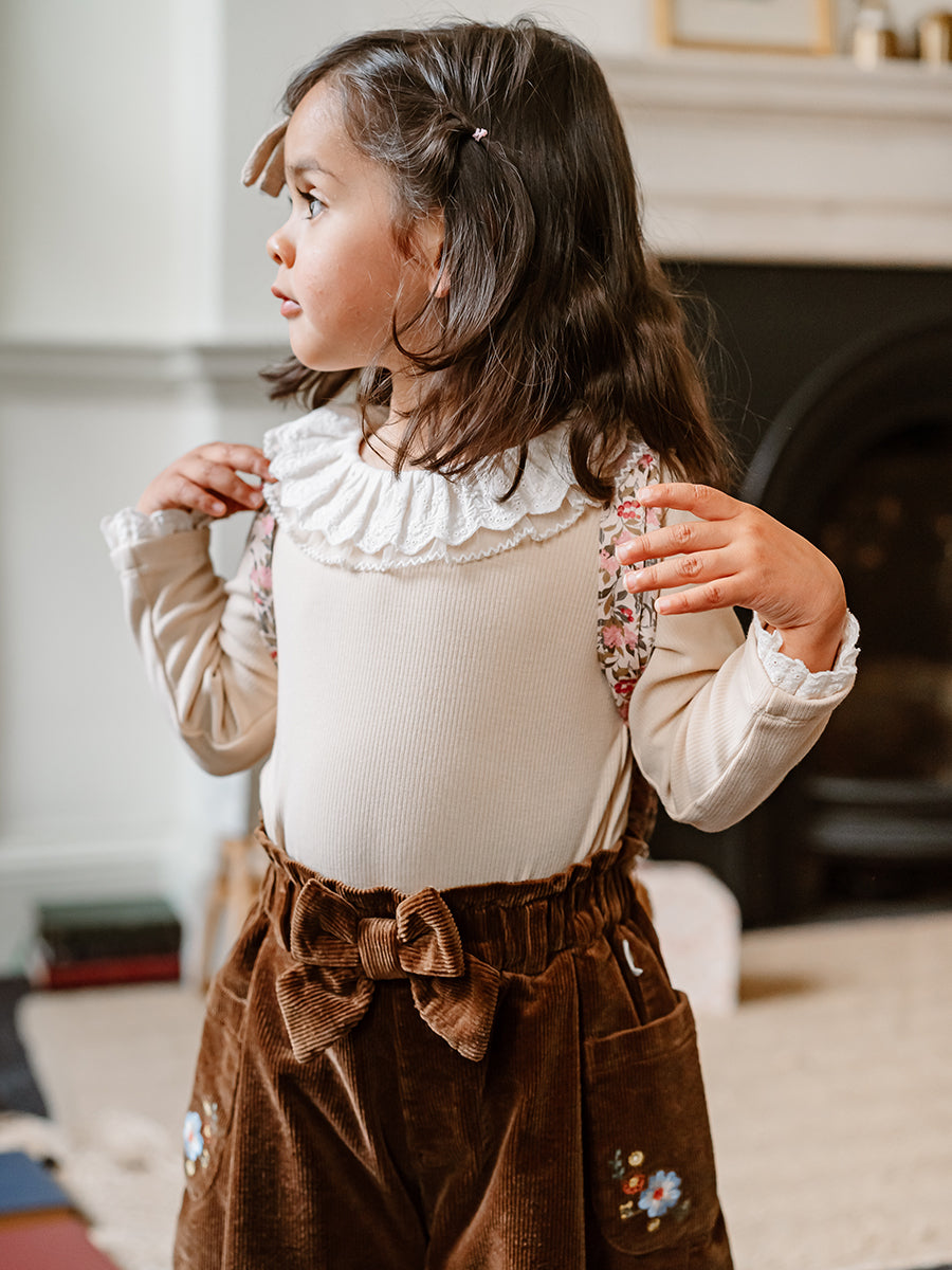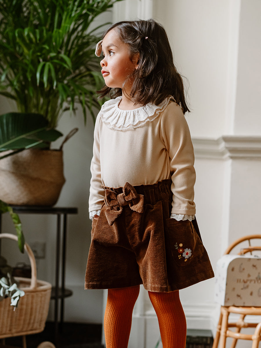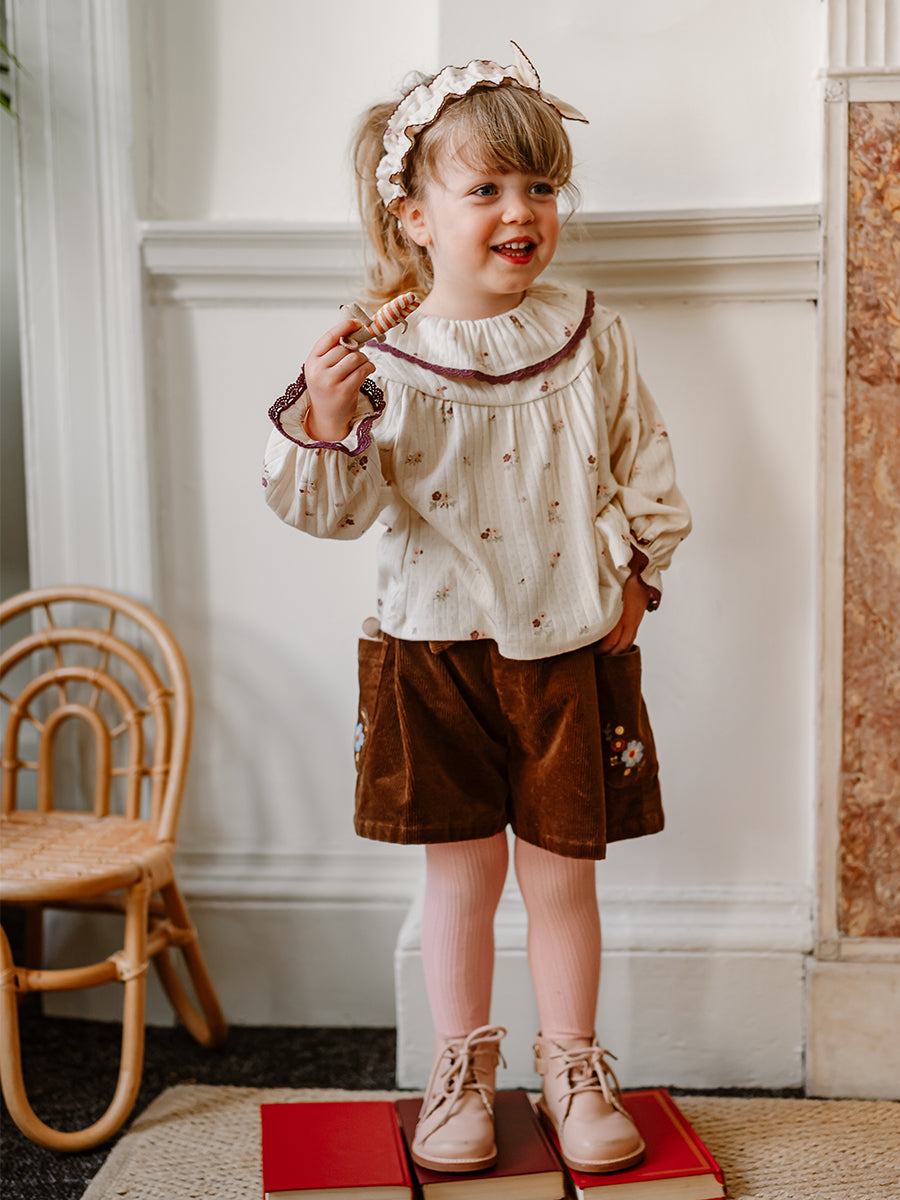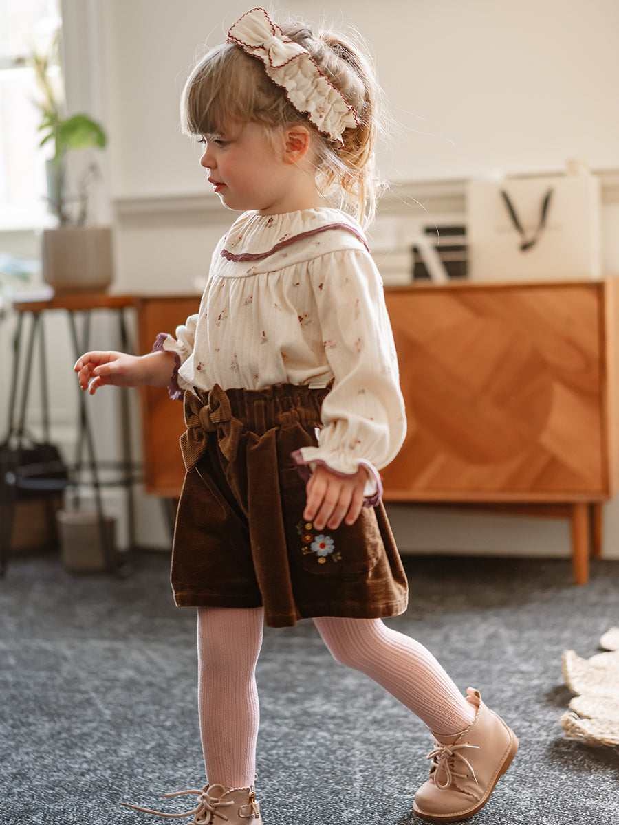 Jessielle Ankle Socks with Floral Ruffle, Caramel & Crème Brulee
