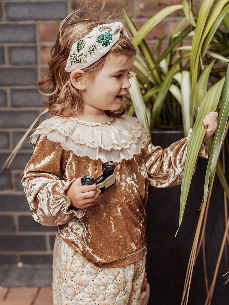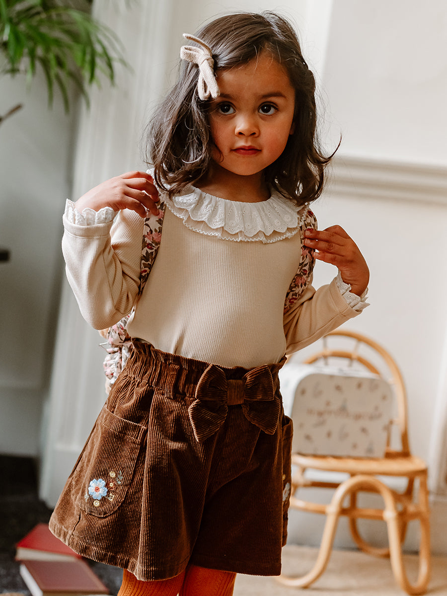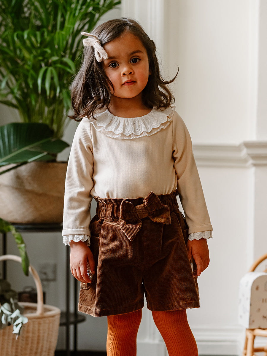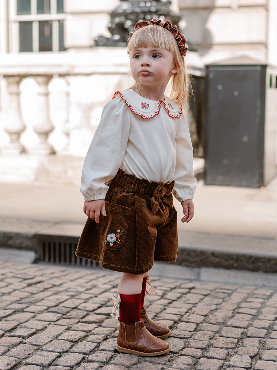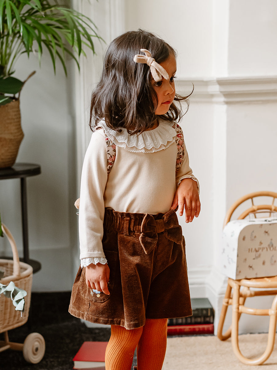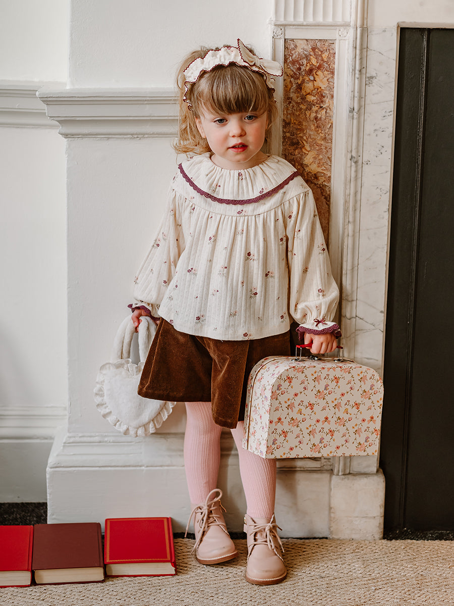 Jessielle Ankle Socks with Floral Ruffle, Caramel & Crème Brulee