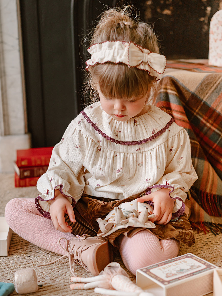 Celine Hair Bow, Wildflower Polka- Burgundy