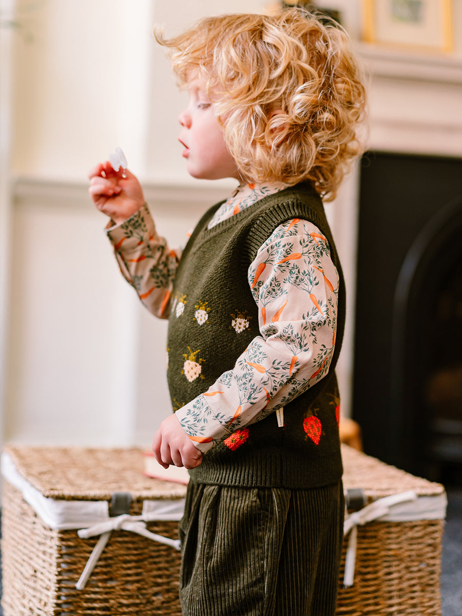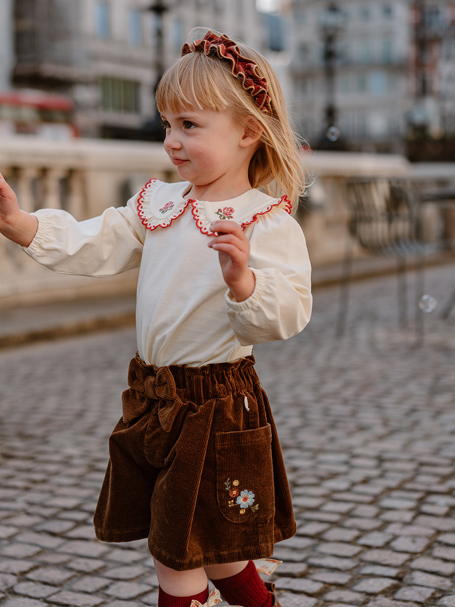 Camila Quilted Trousers, Strawberry Flower Field, White
