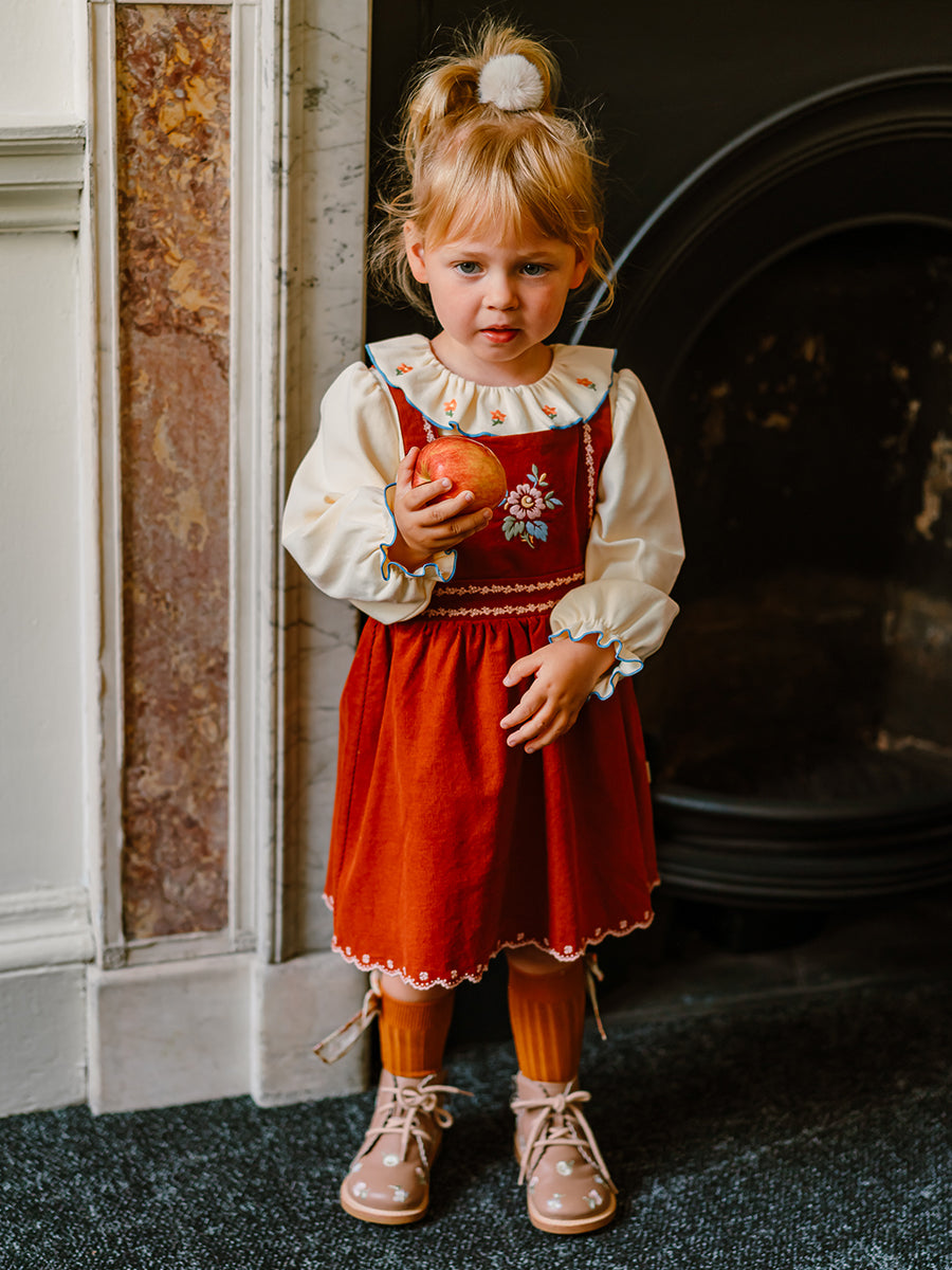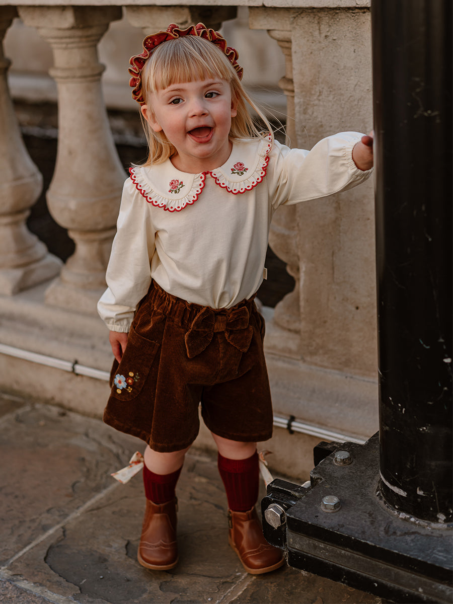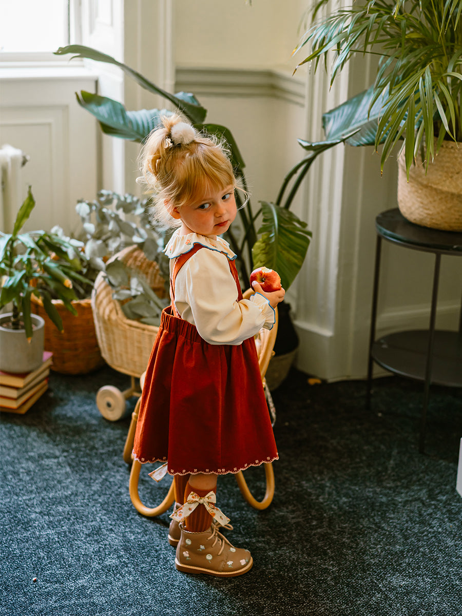 Jessielle Ankle Socks with Floral Ruffle, Princess Red & Caramel