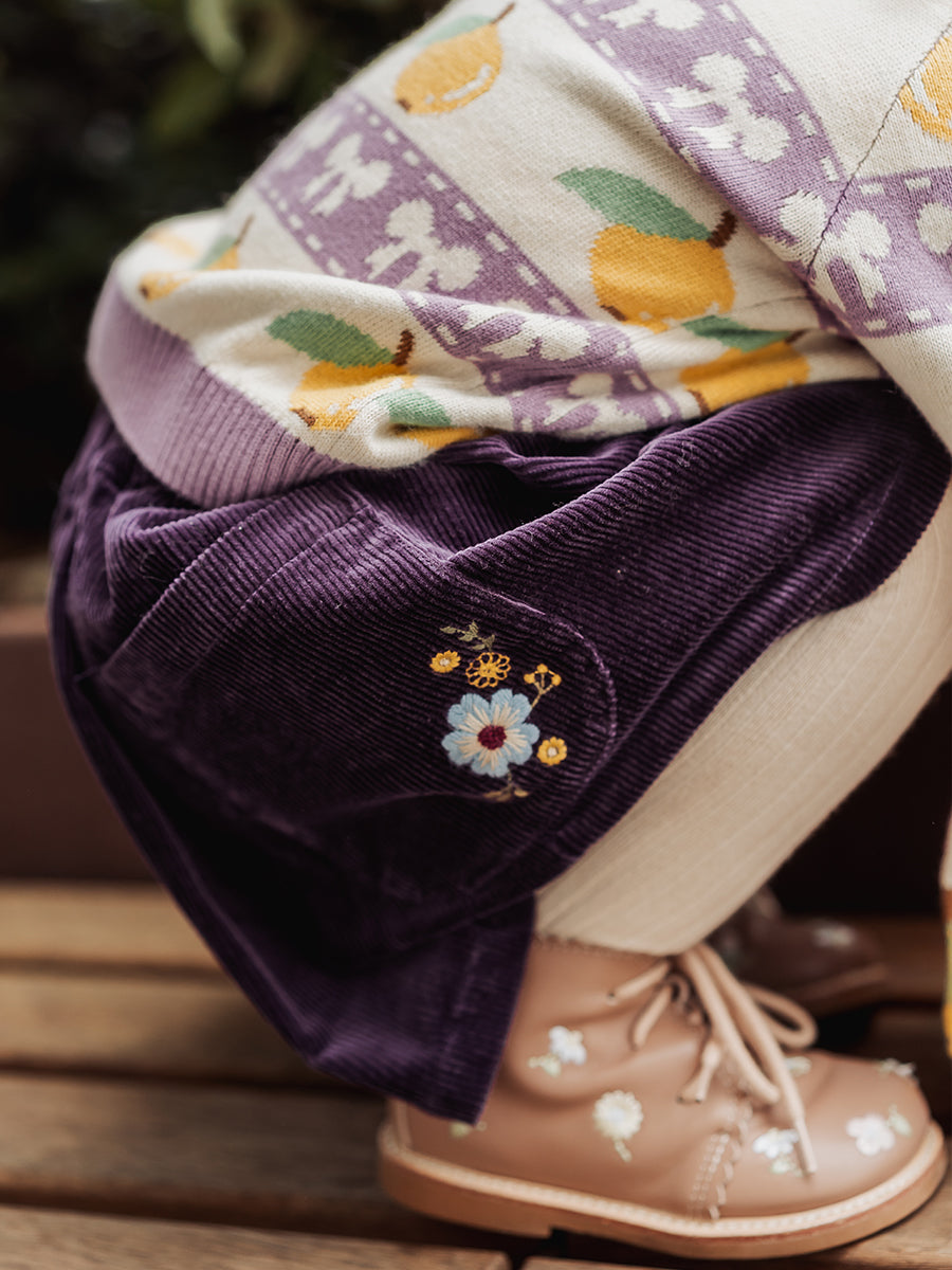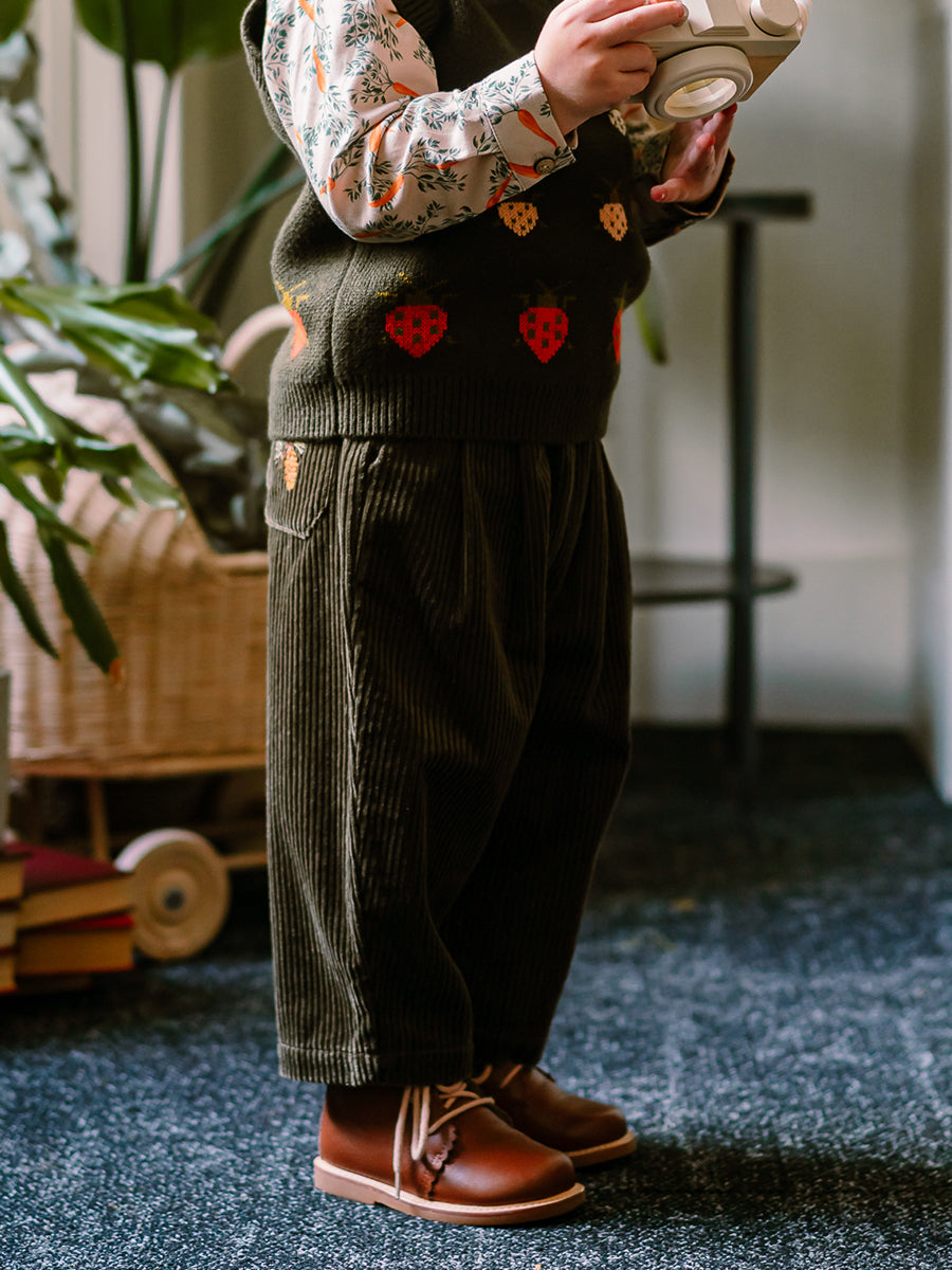 Strawberry Hand-Embroidered Knitted Pants, Royal Red