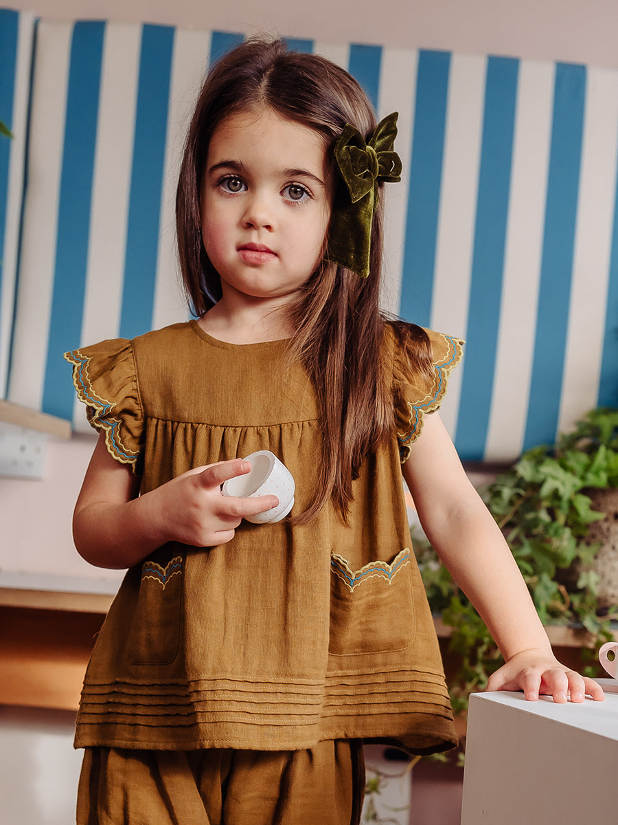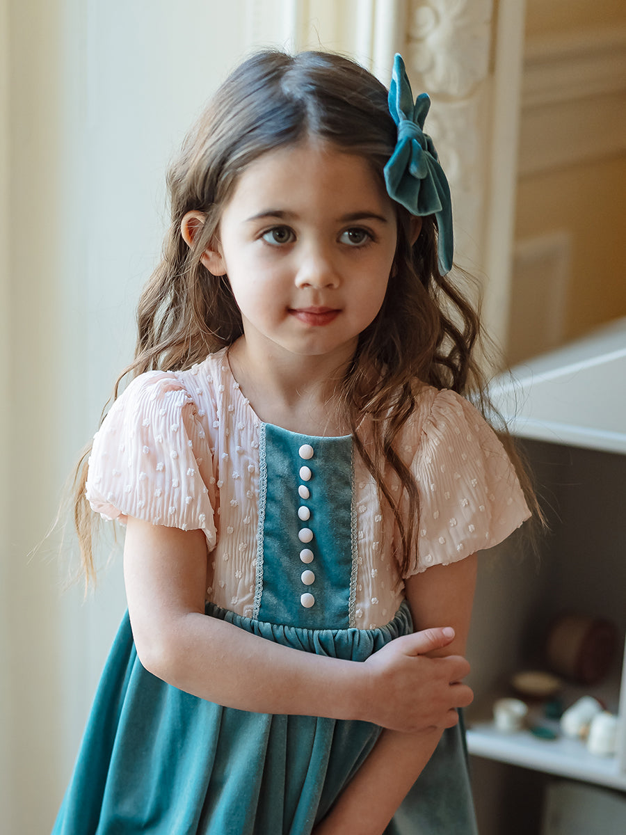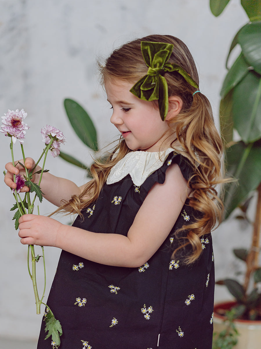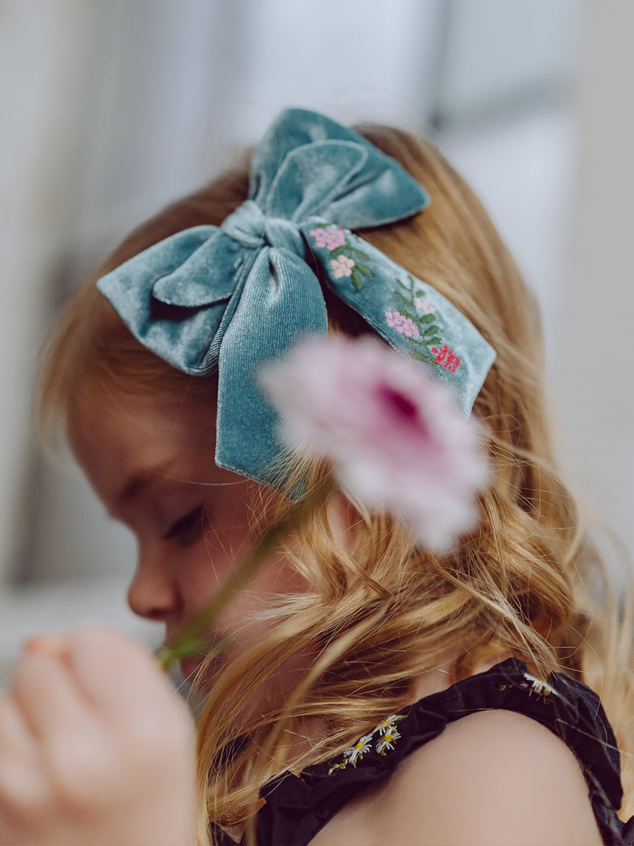Vienna Embroidered Bow Hair Clip, Moss Green