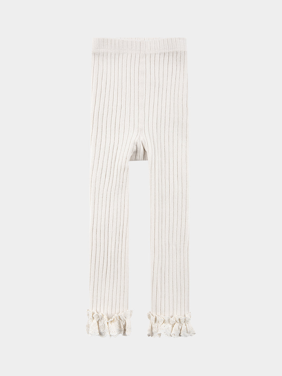 Lace Ruffle Organic Cotton Leggings, Milk White